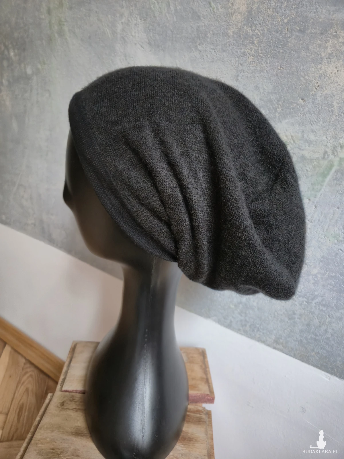 Czapka wełniana czarna na podszewce bardzo miła i ciepła na mniejszą głowę wykończona ściągaczem rozmiar M dla 55- 56 cm polecam Box C1