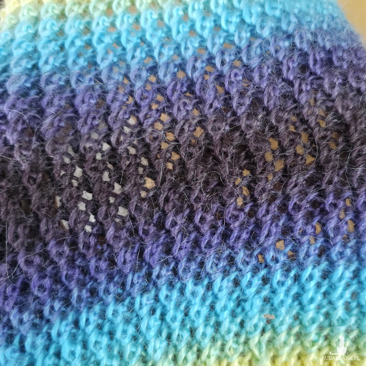 Szalik został wykonany na drutach z włóczki o składzie 75% akryl i 25% alpaka, co gwarantuje nie tylko miękkość i przyjemność w dotyku, ale także doskonałe właściwości termiczne.