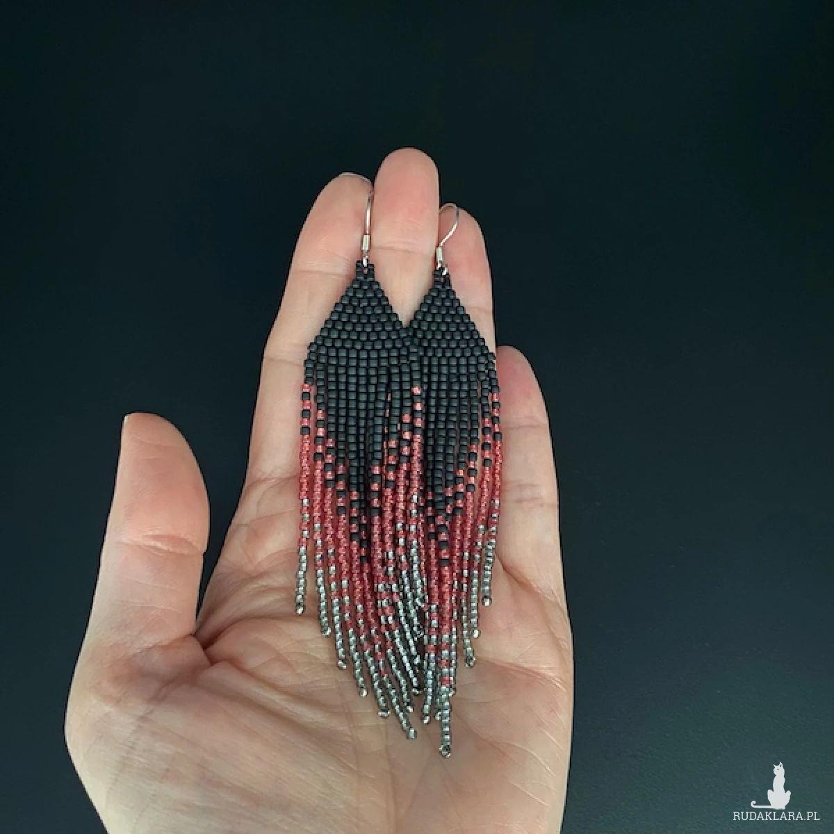 Kolory kolczyków: czarny, malinowy, srebrny.