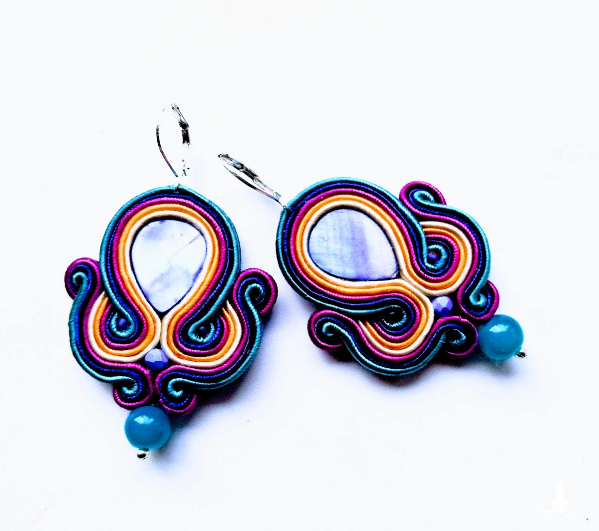 Materiał: sutasz, łezka masy perłowej szkło, koraliki Fire Polish