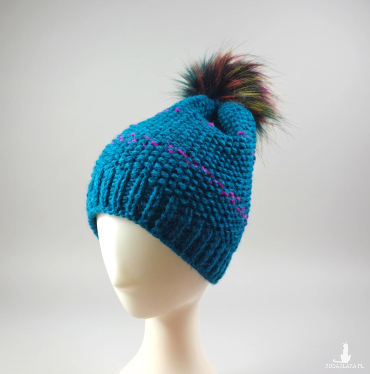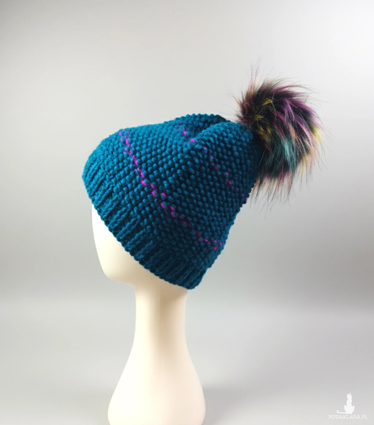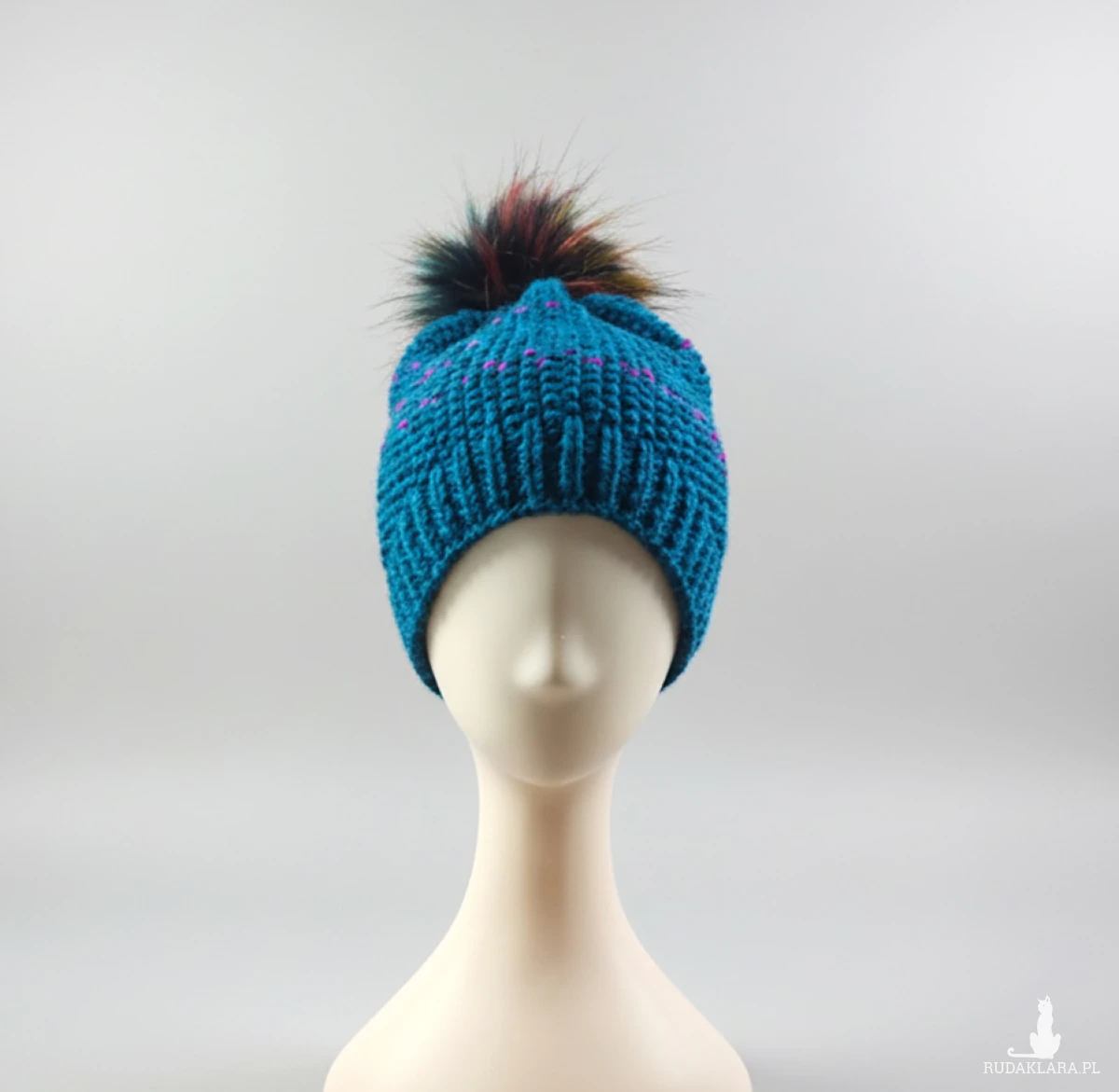 Czapka wykonana ręcznie na drutach z tureckiej włóczki.
