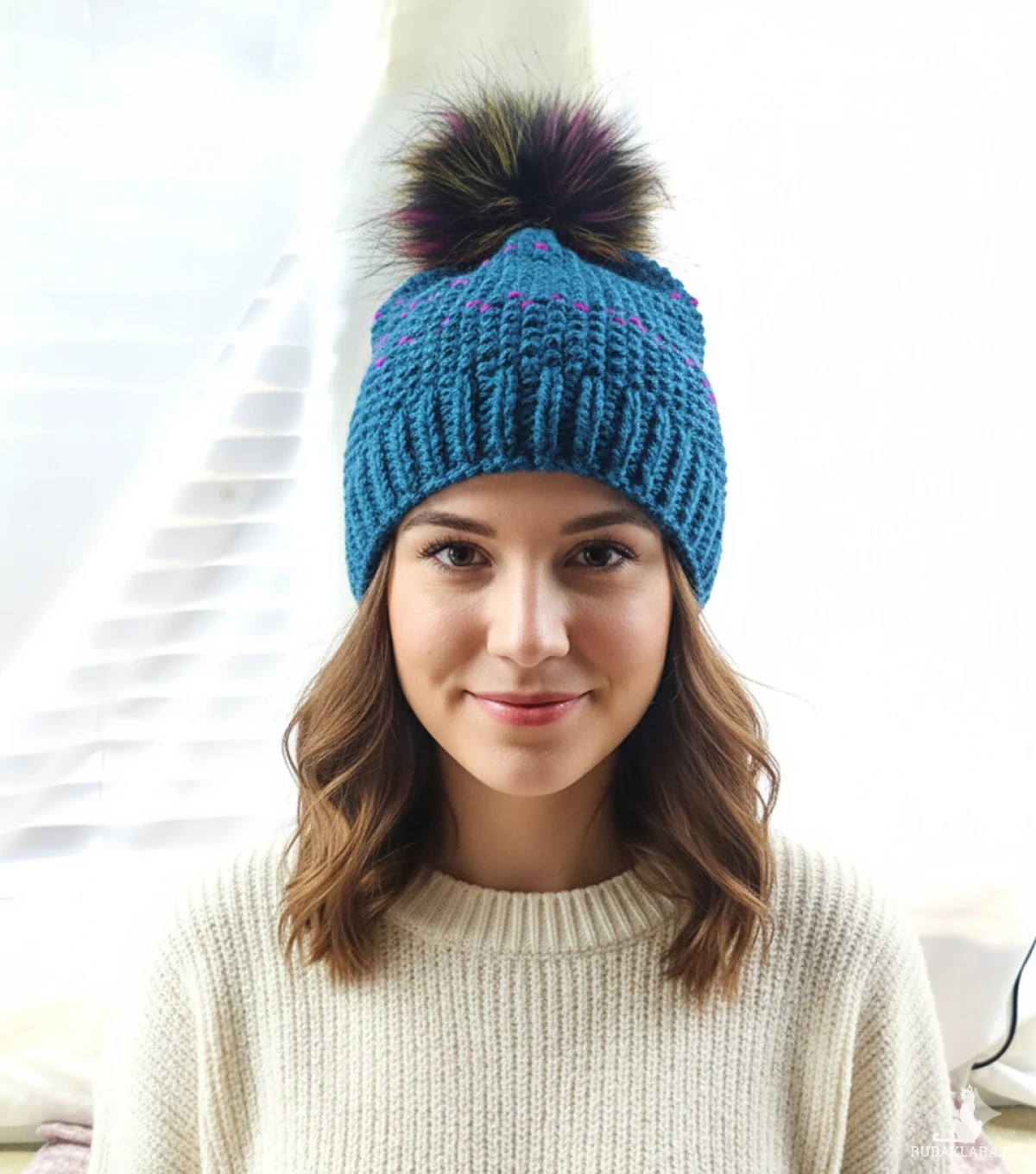 6905 Must-Have na Zimę! Ciepła Czapka z Futrzanym Pomponem, ciemna morska zieleń