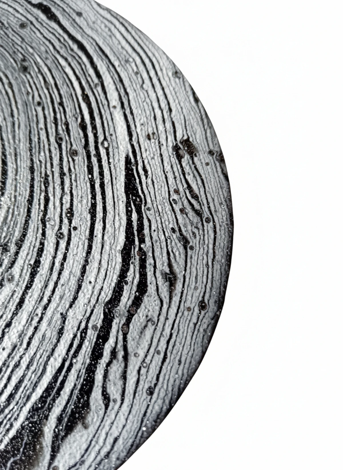 Tao — unikalny, ręcznie wykonany magnes, w którym czerń i biel spotykają się w hipnotyzującym tańcu. Stworzony techniką acrylic pouring, zachwyca organicznym wzorem, który przyciąga wzrok i koi zmysły. W obrazie pojawiają się delikatne, błyszczące punkty, które dodają mu głębi i subtelnego uroku.