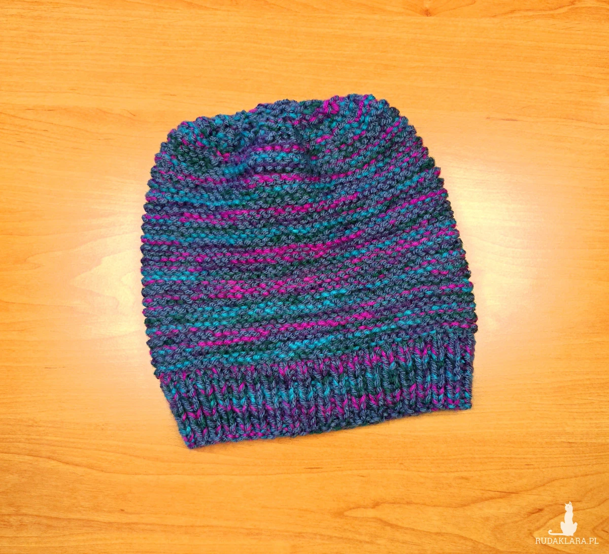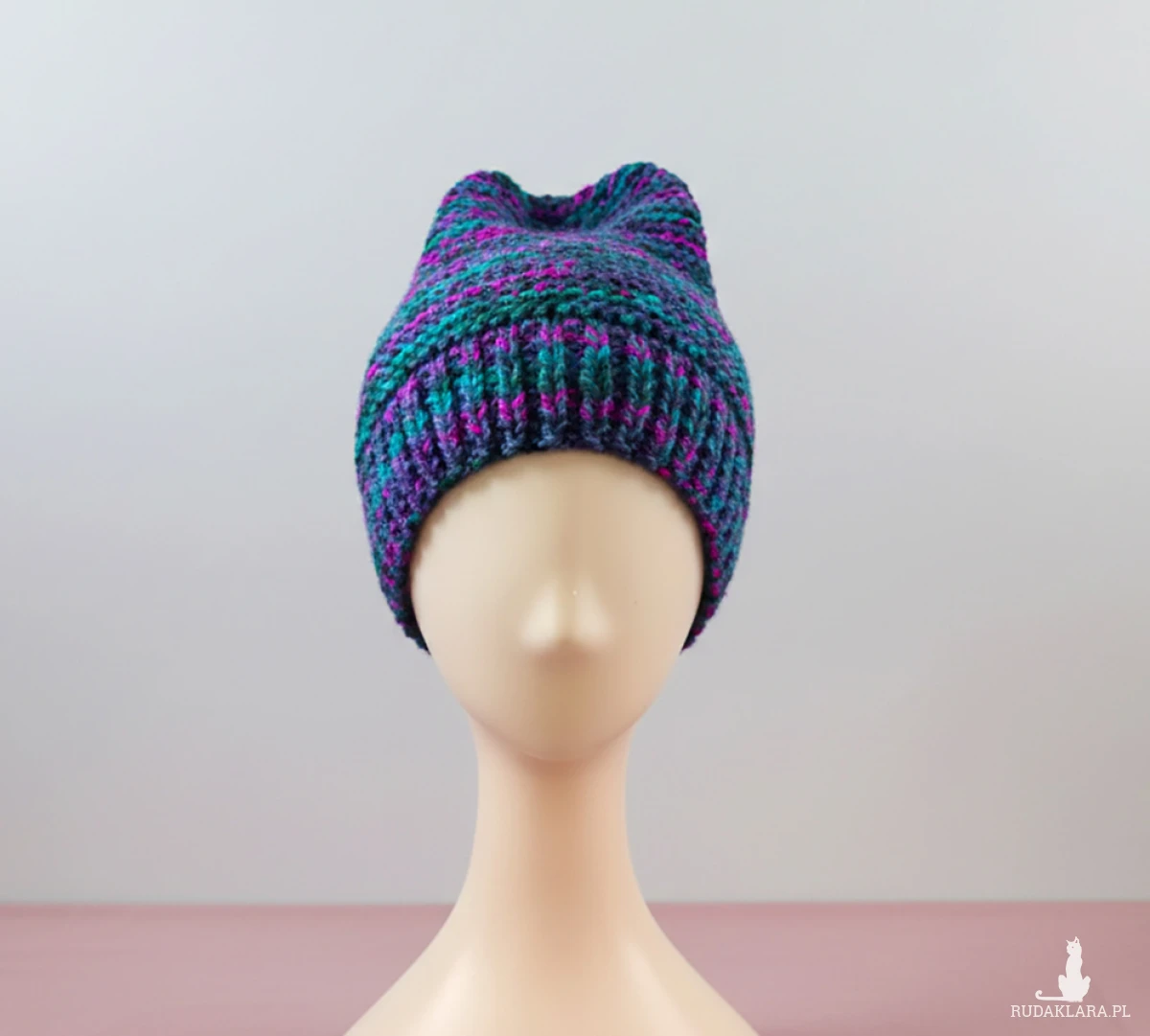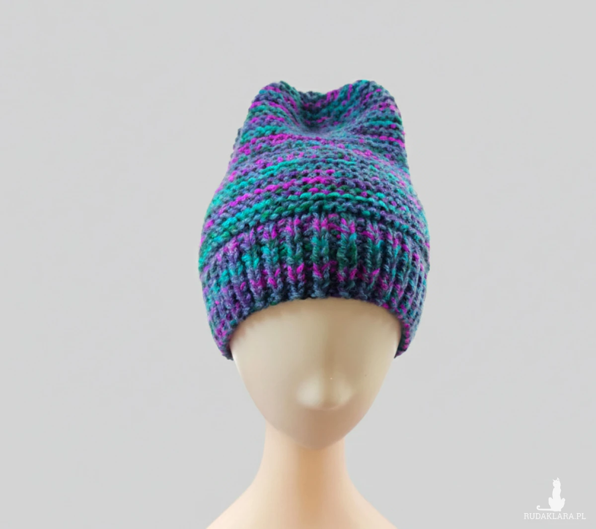 6907 Ciepła Czapka typu Beanie w Intensywnym Melanżu - kolorowa, ręcznie robiona czapka beanie