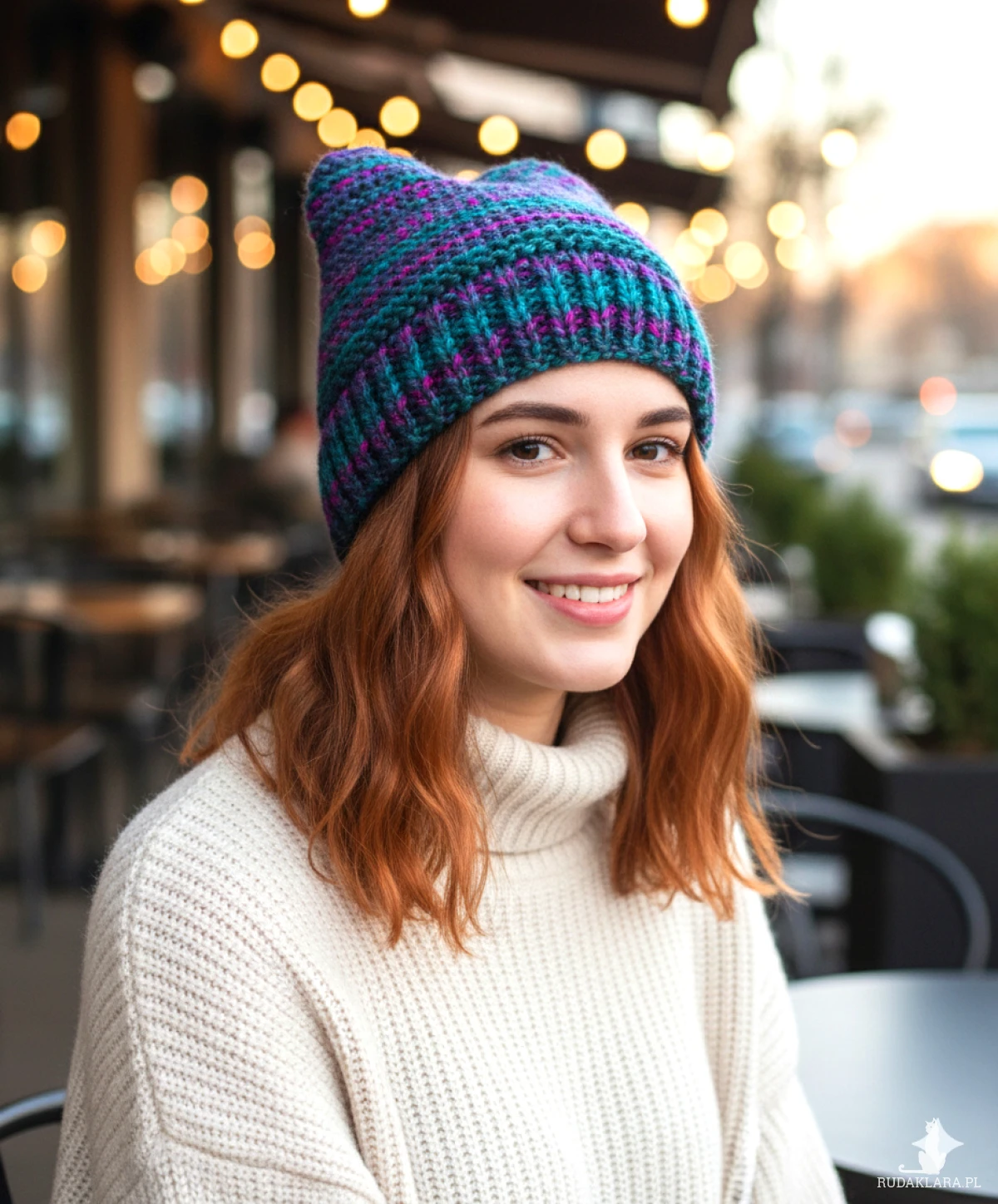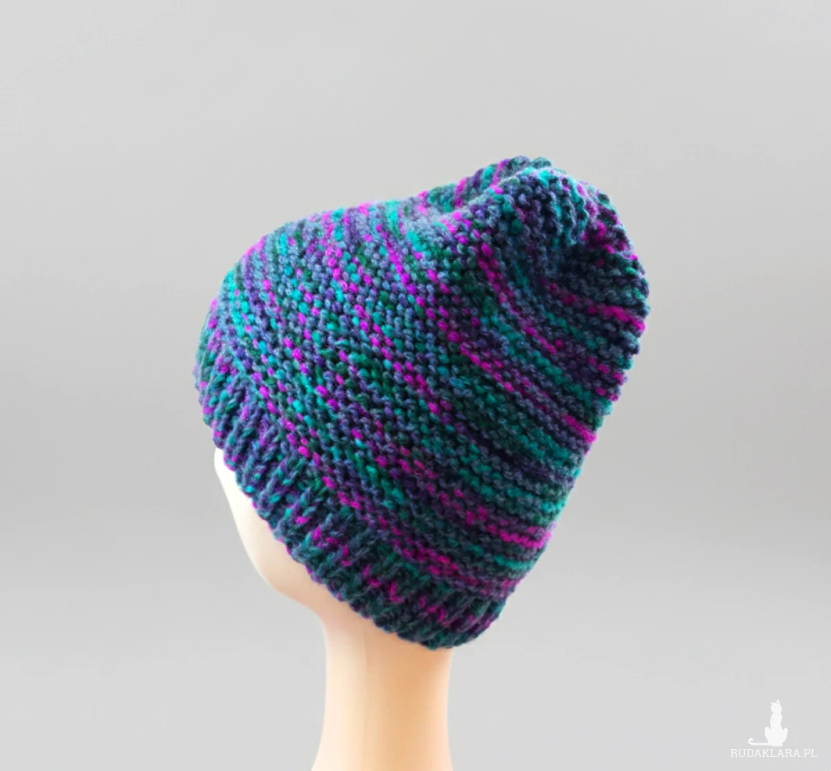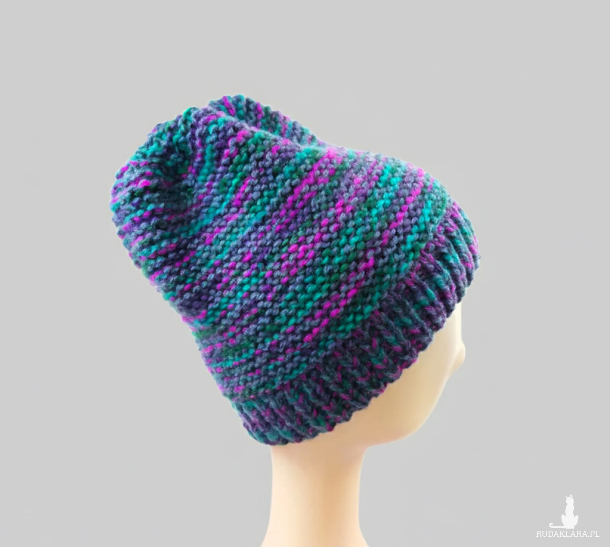 Czapka wykonana ręcznie na drutach z tureckich włóczek.