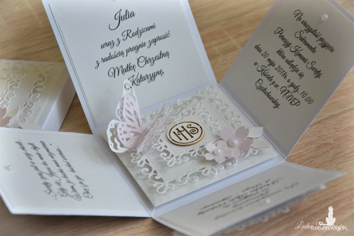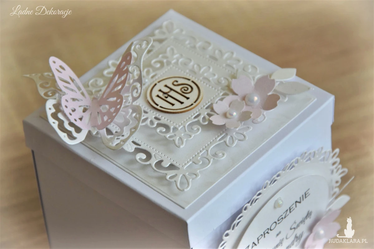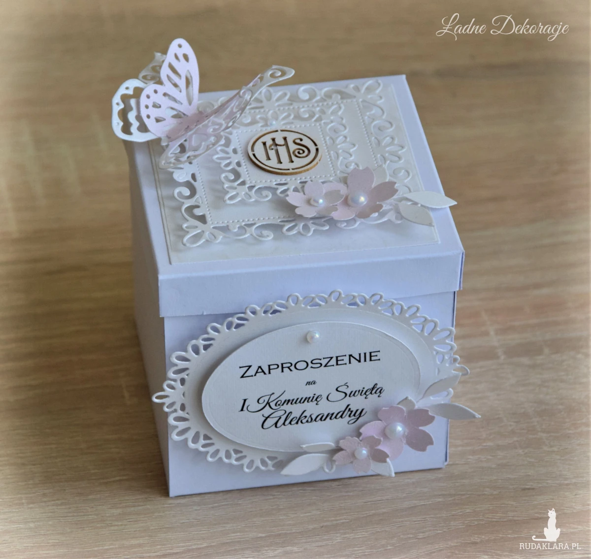 Pracownia Ładne Dekoracje wykona ręcznie robione oryginalne Zaproszenia komunijne w kształcie wybuchowych pudełeczek czyli exploding boxów.