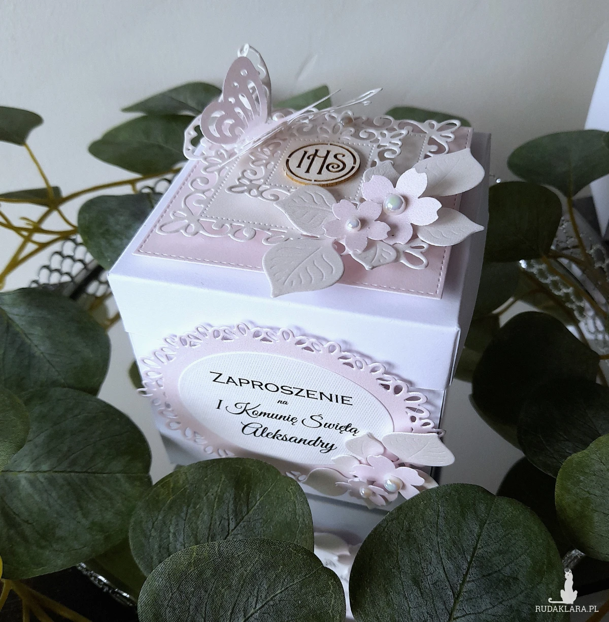 Pracownia Ładne Dekoracje wykona ręcznie robione oryginalne Zaproszenia komunijne w kształcie wybuchowych pudełeczek czyli exploding boxów.