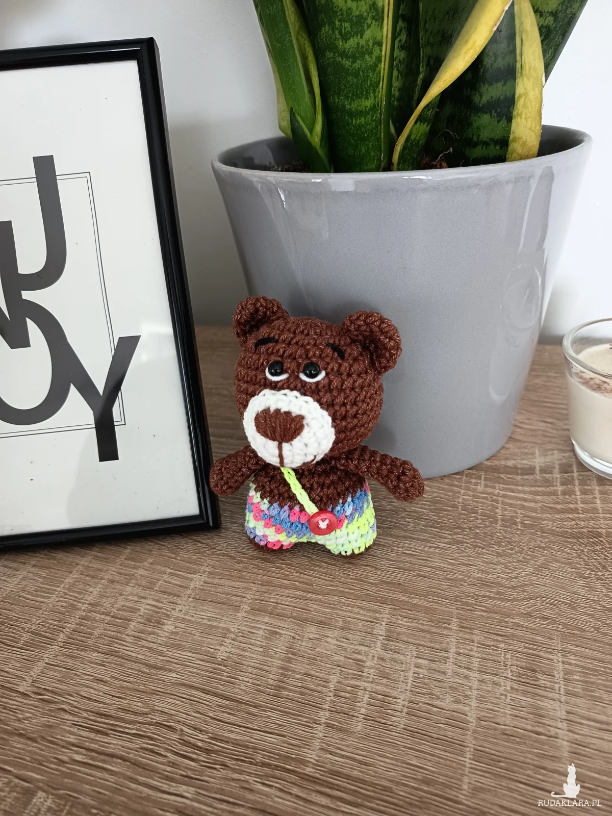 Brązowy miś w kolorowych porteczkach brelok zawieszka