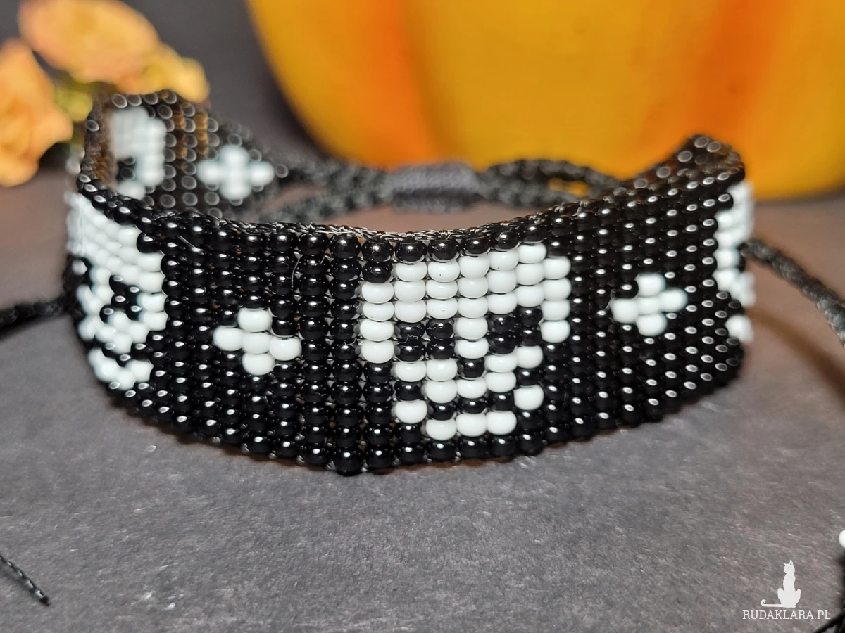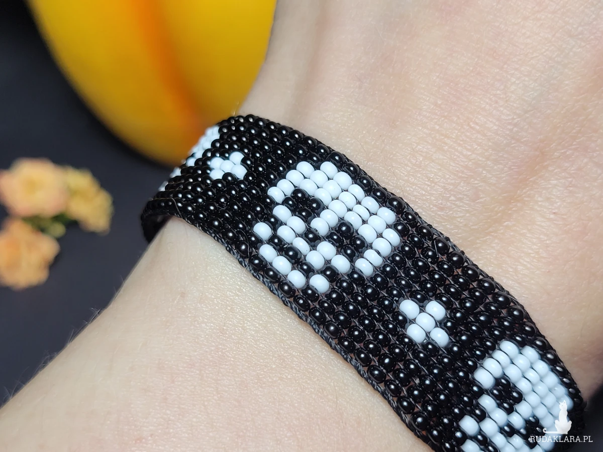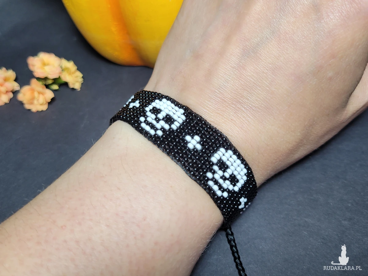 • Ręcznie robiona z koralików bransoletka z motywem czaszki 💀 ⚡