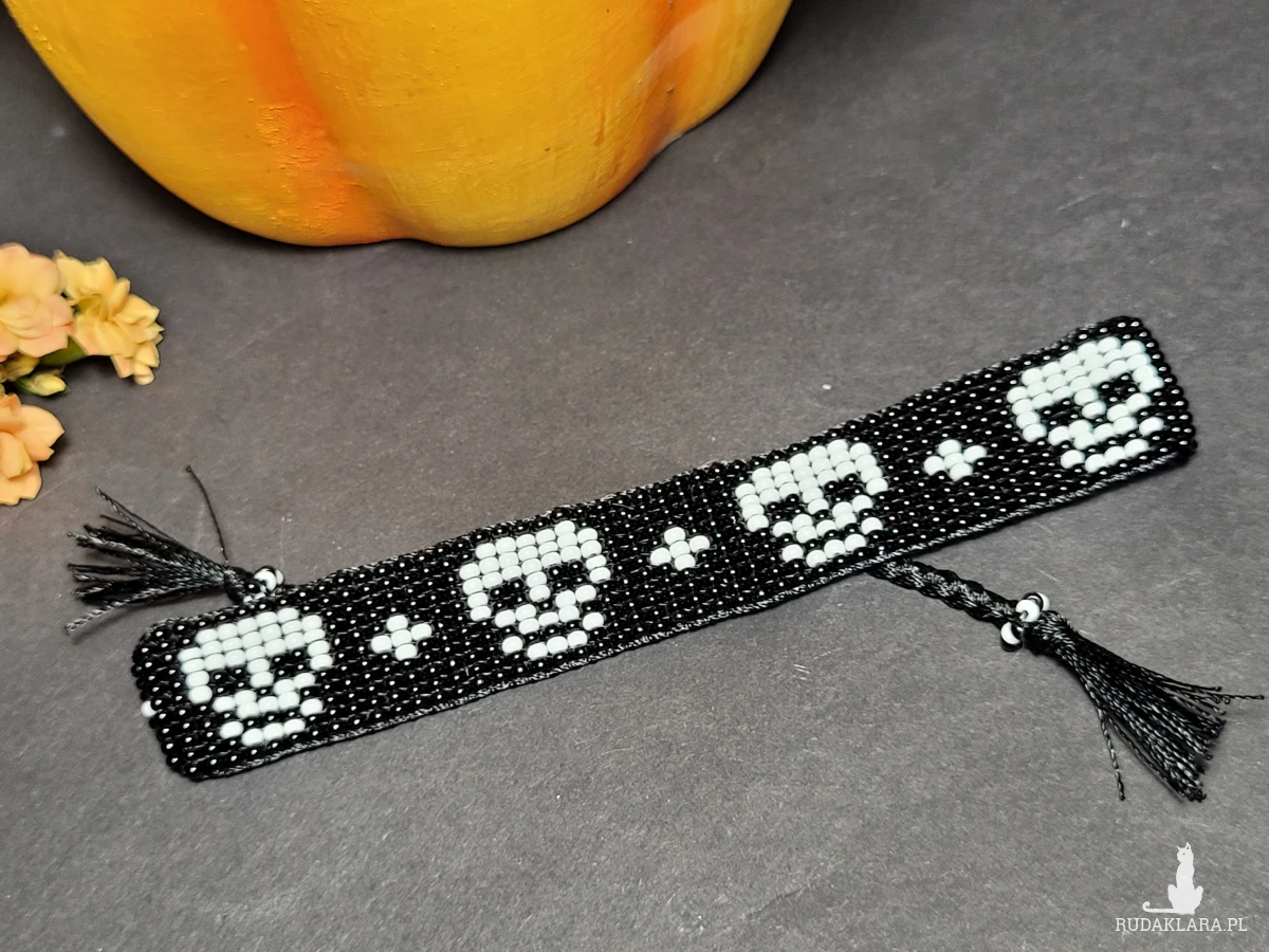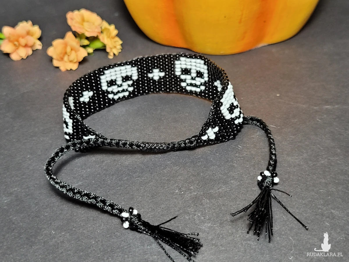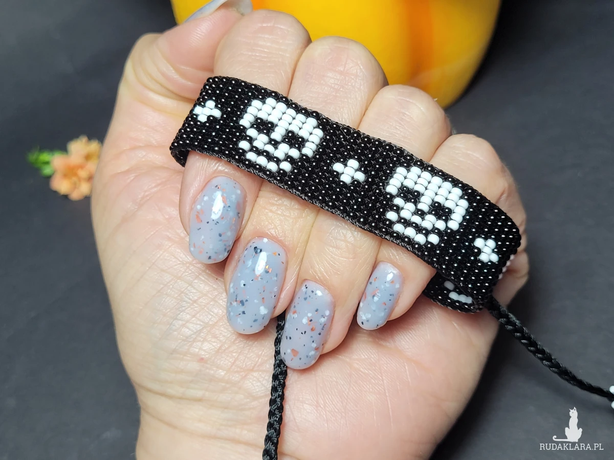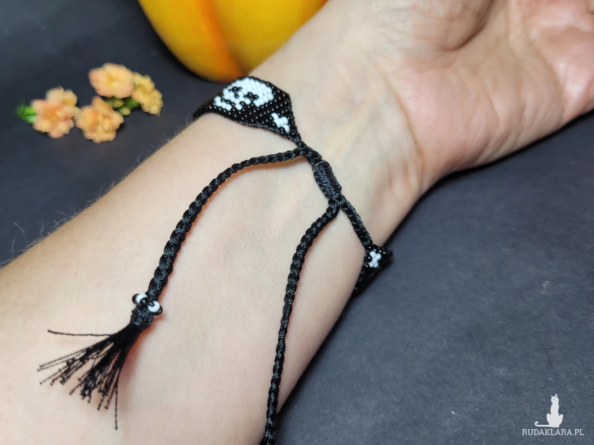 • Ręcznie robiona z koralików bransoletka z motywem czaszki 💀 ⚡