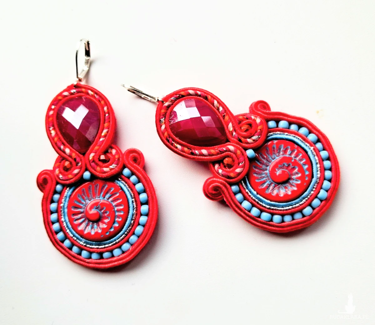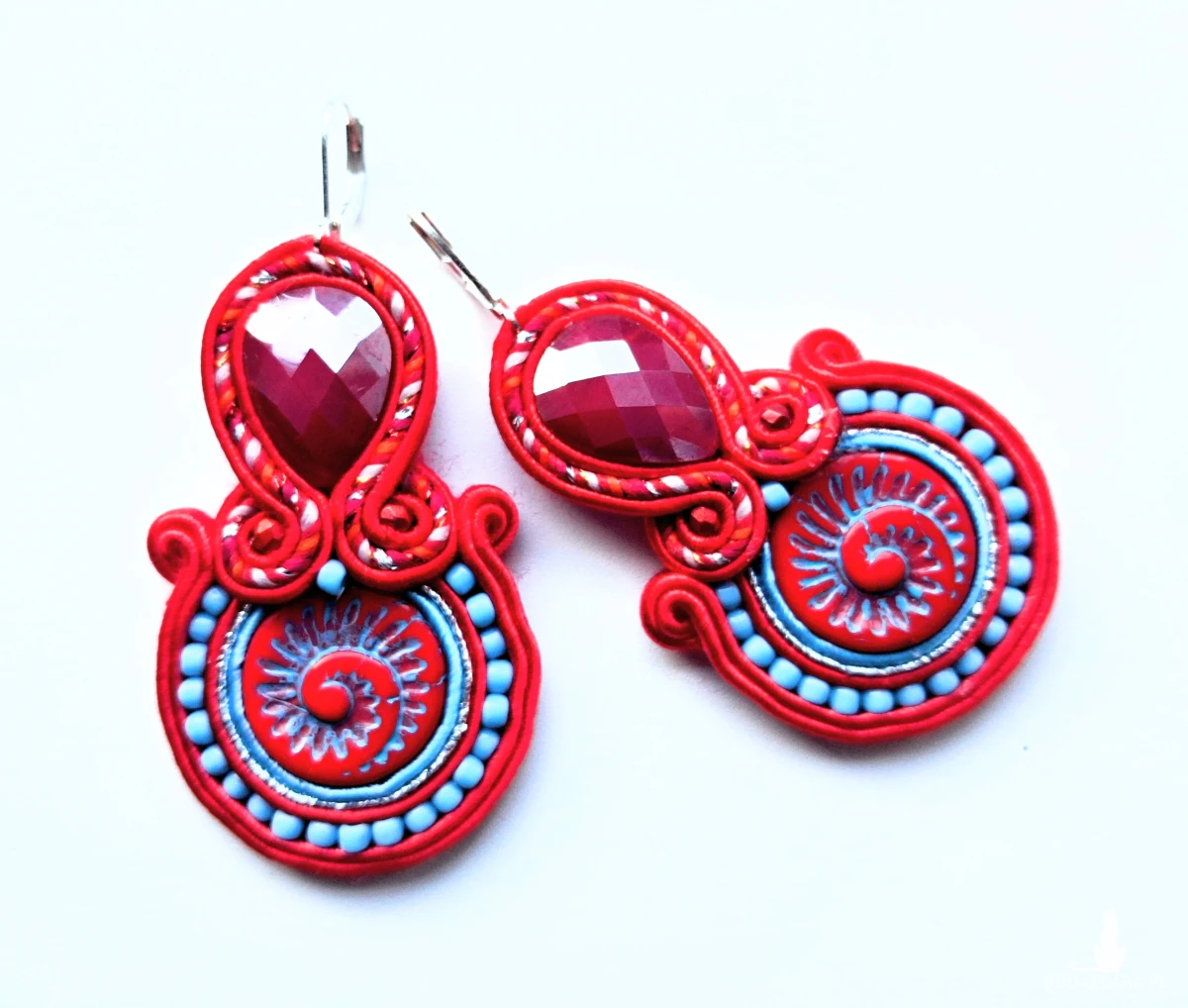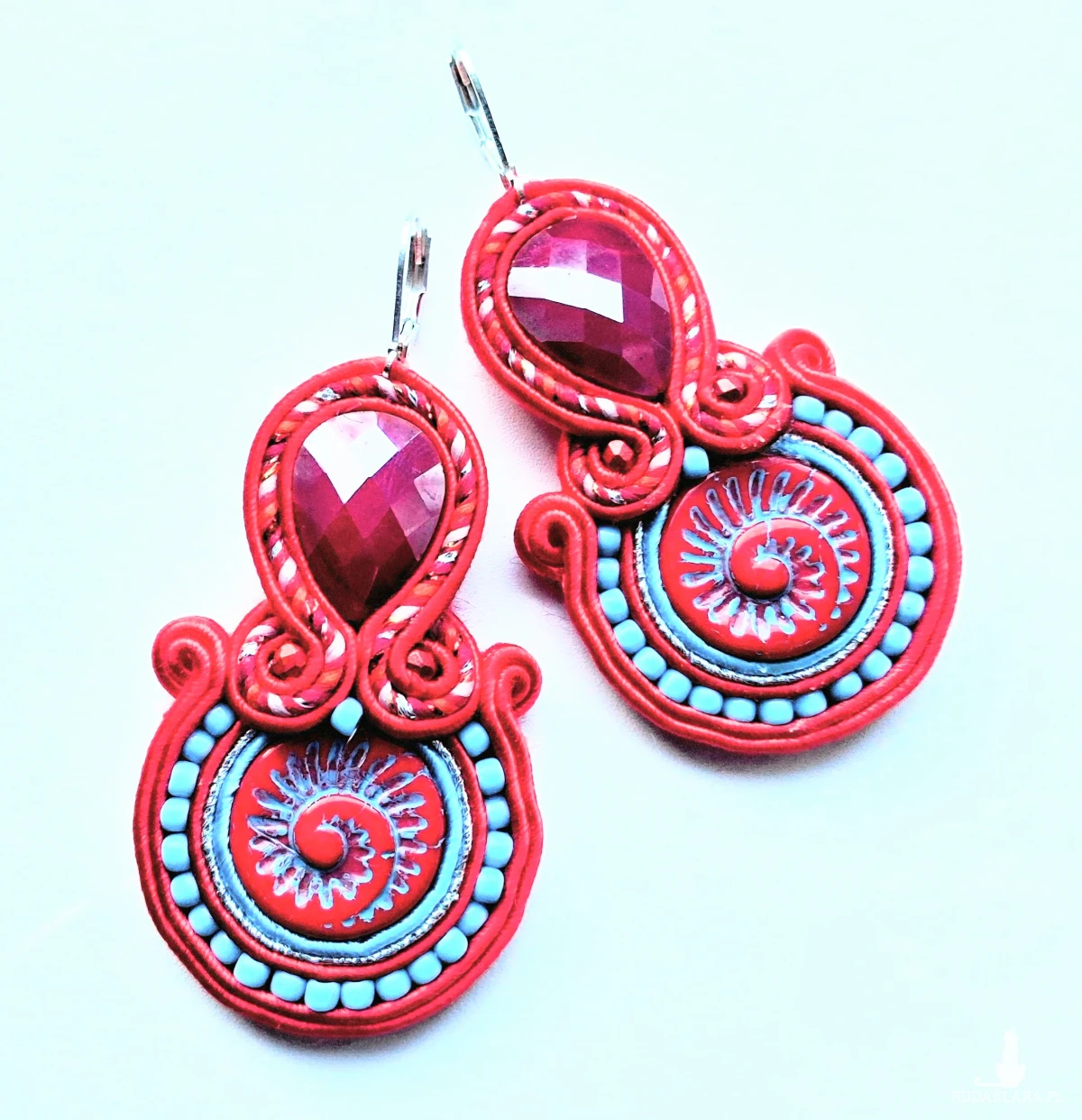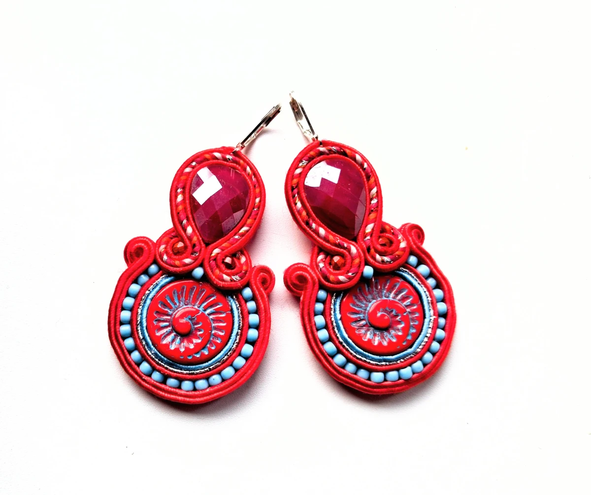 Kolczyki sutaszowe ręcznie haftowane.