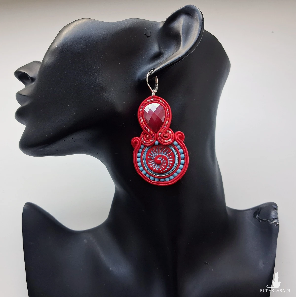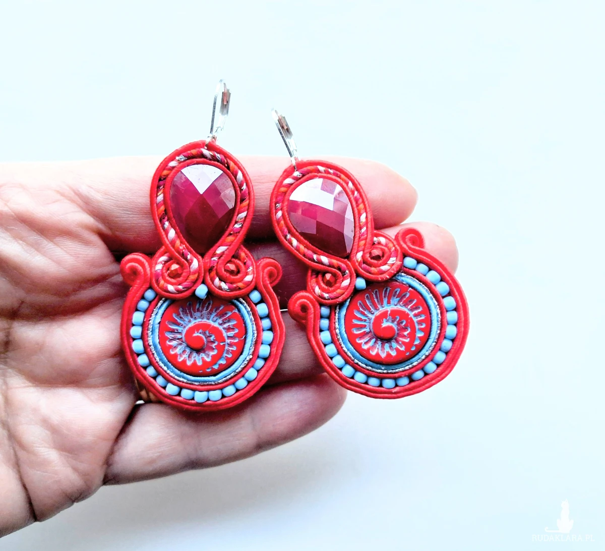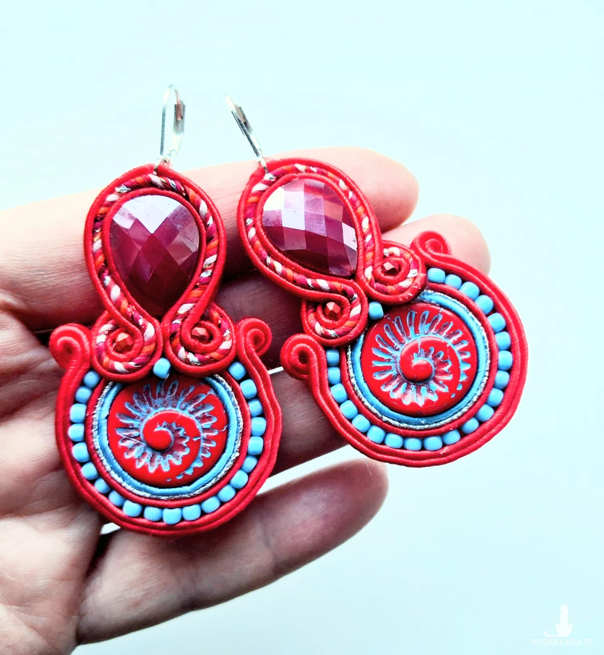 Kolczyki sutaszowe ręcznie haftowane.