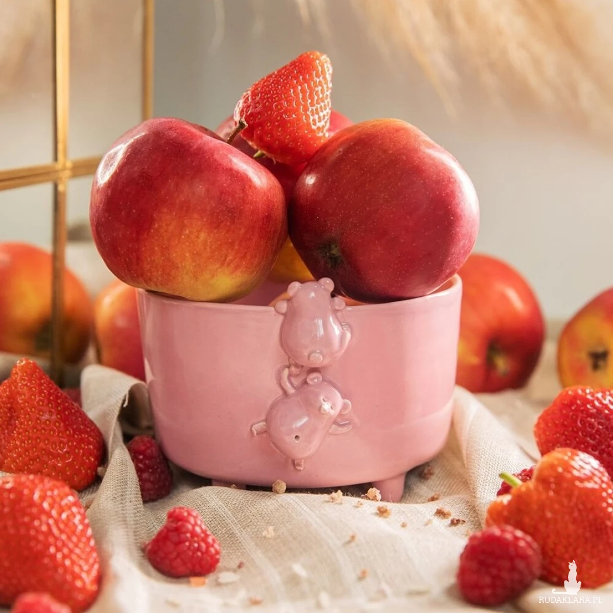 Ręcznie robiona, różowa miseczka śniadaniowa, po której wspinają się dwa urocze misie. Miseczka ceramiczna, w której możesz przechowywać owoce, słodycze. Może schować w niej swoje drobiazgi, czy wykorzystać ją jako ozdobę.