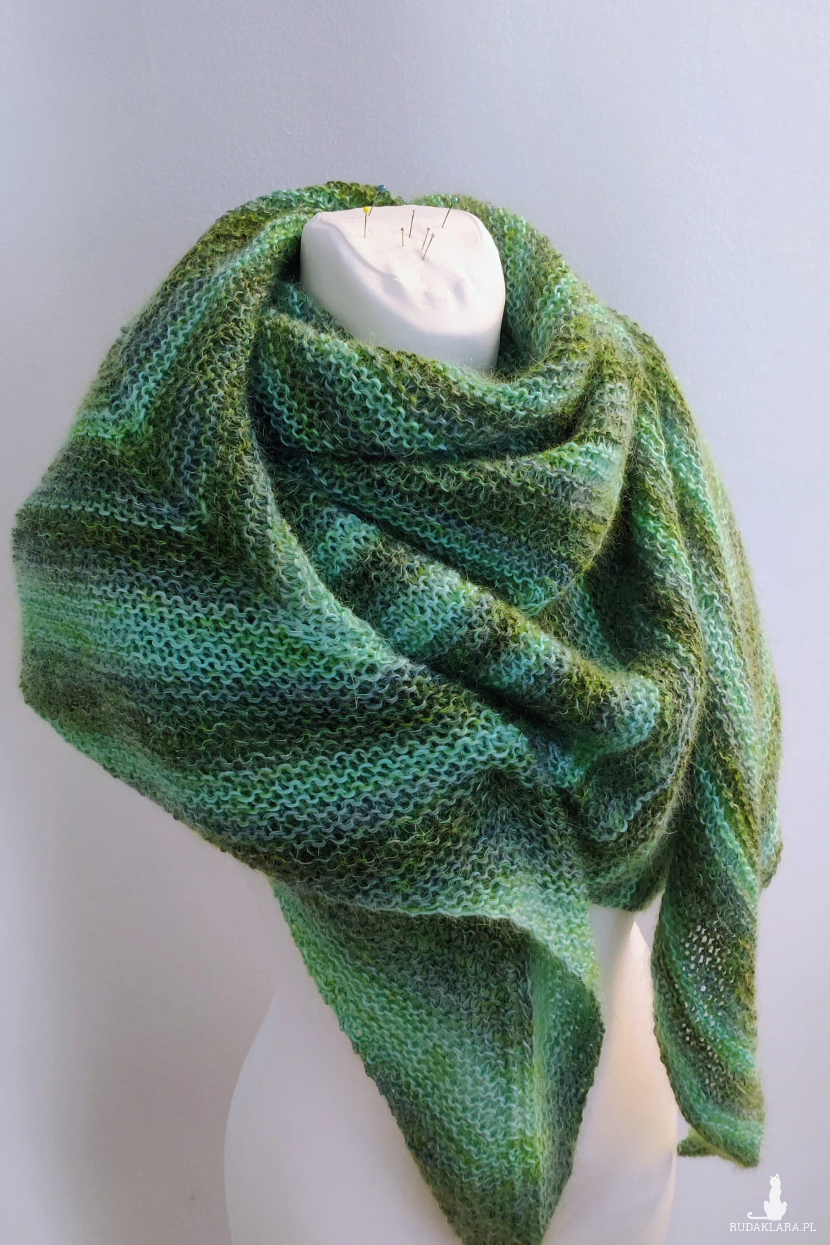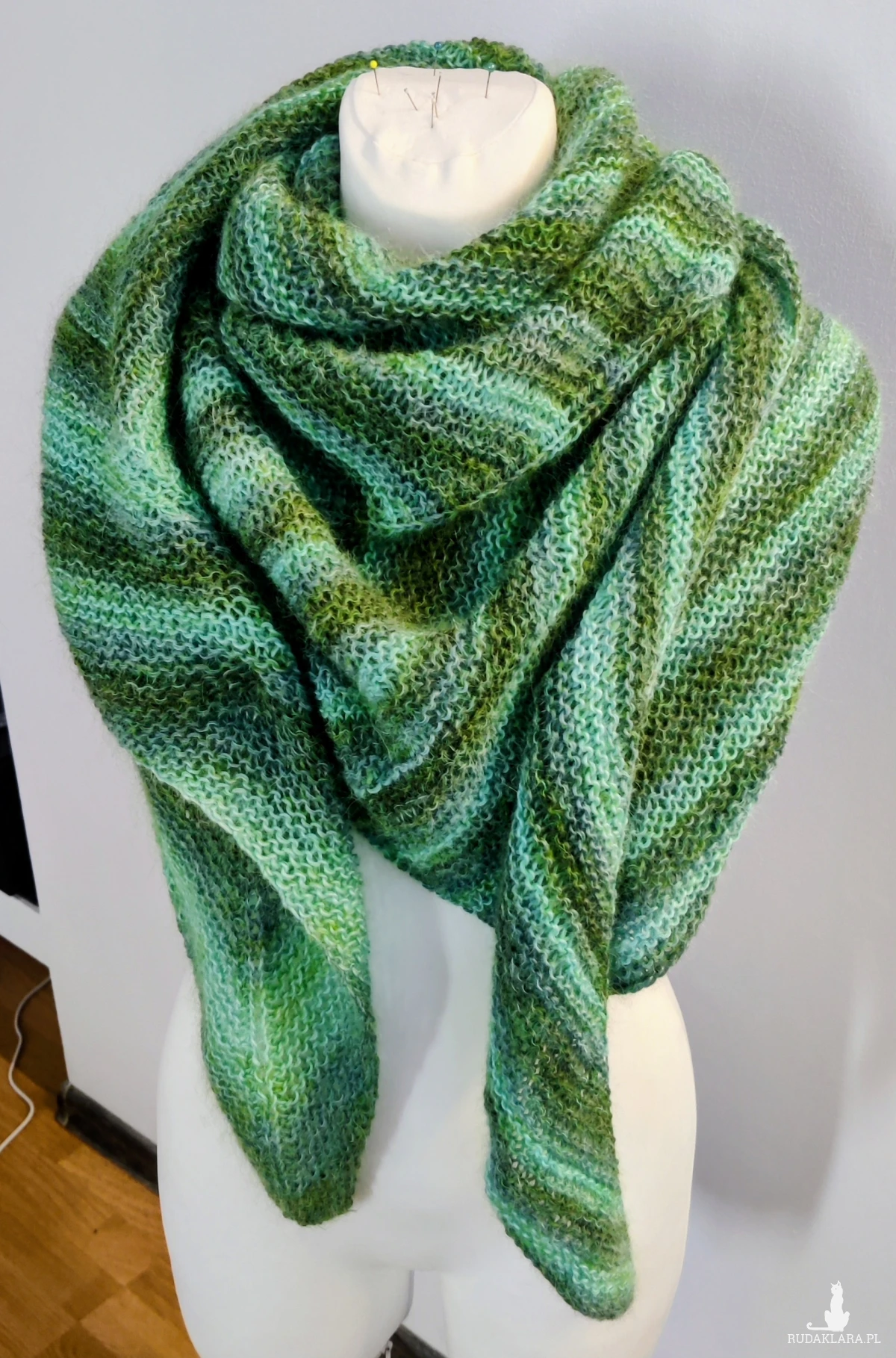 Bardzo duża chusta asymetrycznie zrobiona strzałka otuli, ogrzeje w zimowe dni.
