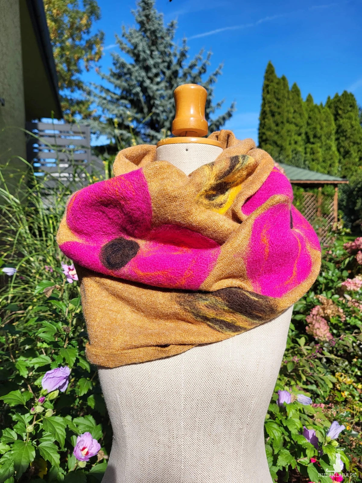 Super prezent na dzień mamy miodowy filcowany wełniany miły i ciepły komin handmade, zdjęcie trochę przekłamuje kolor ten granat jest bardziej podobny do jeansu tak jak na zdjęciu dołączonym przykładowym- tuba, owijany dwa razy, filcowany wełną merynosów, bardzo ciepły i miły, doskonały na prezent, fantastyczny na codzienne noszenie, zwraca uwagę, dodaje koloru, nie zginiesz w tym kominie na ulicy, pojedyncze egzemplarze, polecam bestseller,czas oczekiwania tydzien