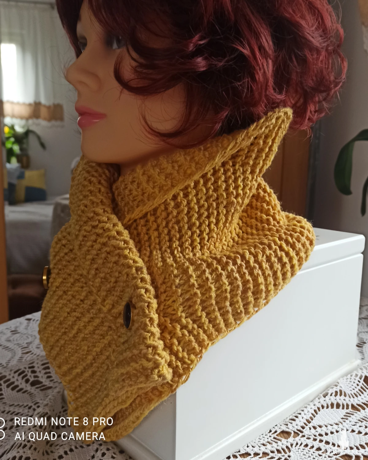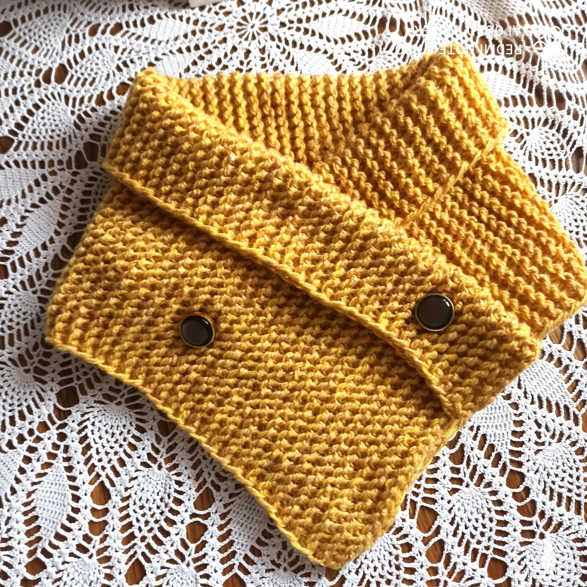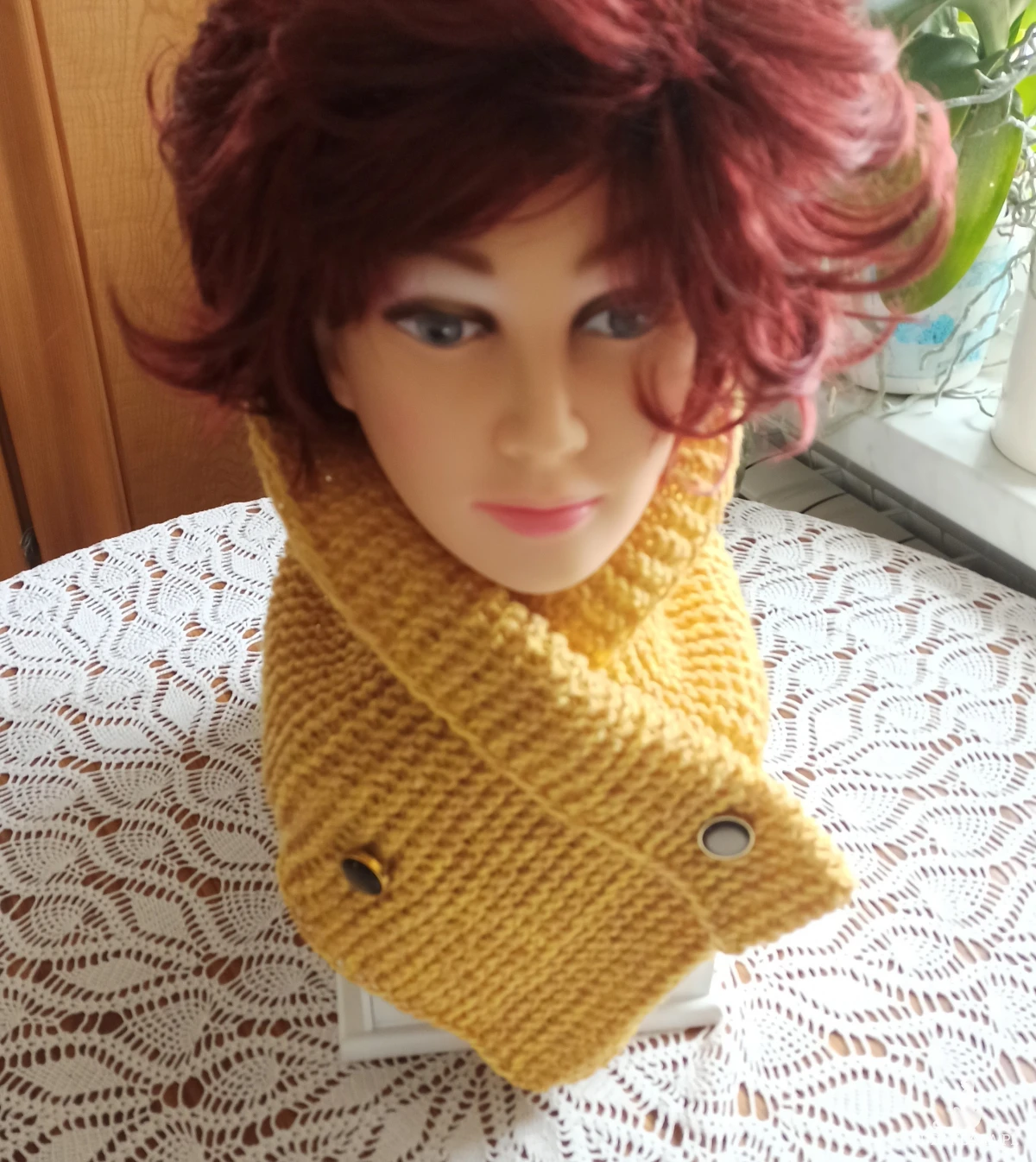 Komin w kolorze słońca wykonany handmade ściegiem francuskim z wełny z domieszką 50% akrylu, ozdobiony efektownymi guzikami. Guziki przymocowane jako zapięcie, jest praktyczne i wygodne w użyciu, można obwód dopasować do własnych potrzeb. Miękki w dotyku, wełna wysokiej jakości. Można odwinąć z tyłu wysoko i ochronić głowę od zimna. Skutecznie zatrzymuje ciepło, przepuszcza powietrze, łatwo przylega do ciała. Kolor modny w tym sezonie. Jedyny taki!!!