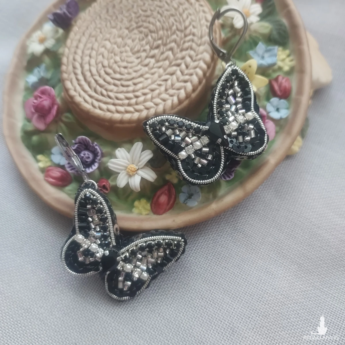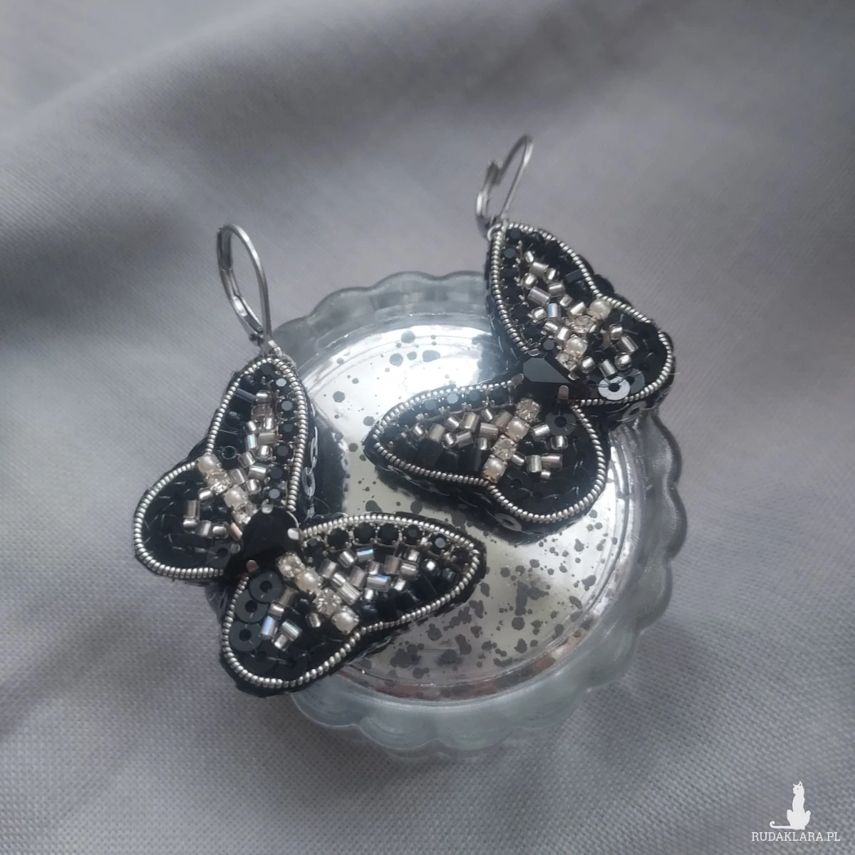 Kolczyki Motylki niezwykłe połączenie czerni oraz srebra.
