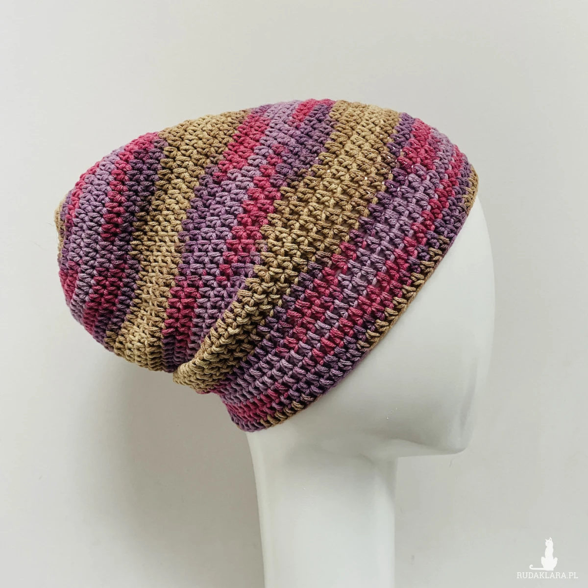 Czapkę wykonałam z wysokiej jakości włóczki bawełniano-akrylowej, która zapewnia wygodę noszenia przez cały dzień.