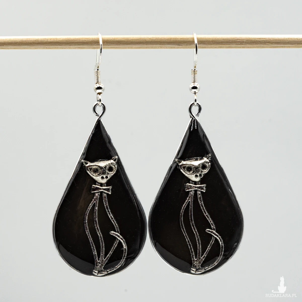 wykonane przeze mnie unikalne kolczyki w klasycznym gotyckim stylu z kotem, dla wszystkich fanów "czarnej sceny". Należę do niej od blisko 30 lat i dlatego tworzę biżuterię, która może wydawać się mniej "gotycka" niż inne wzory, tzn. mniej wizualnie wybujała, ale skierowana jest przede wszystkim do tych, którzy cenią sobie subtelność bez utraty podstawowych gotyckich cech.