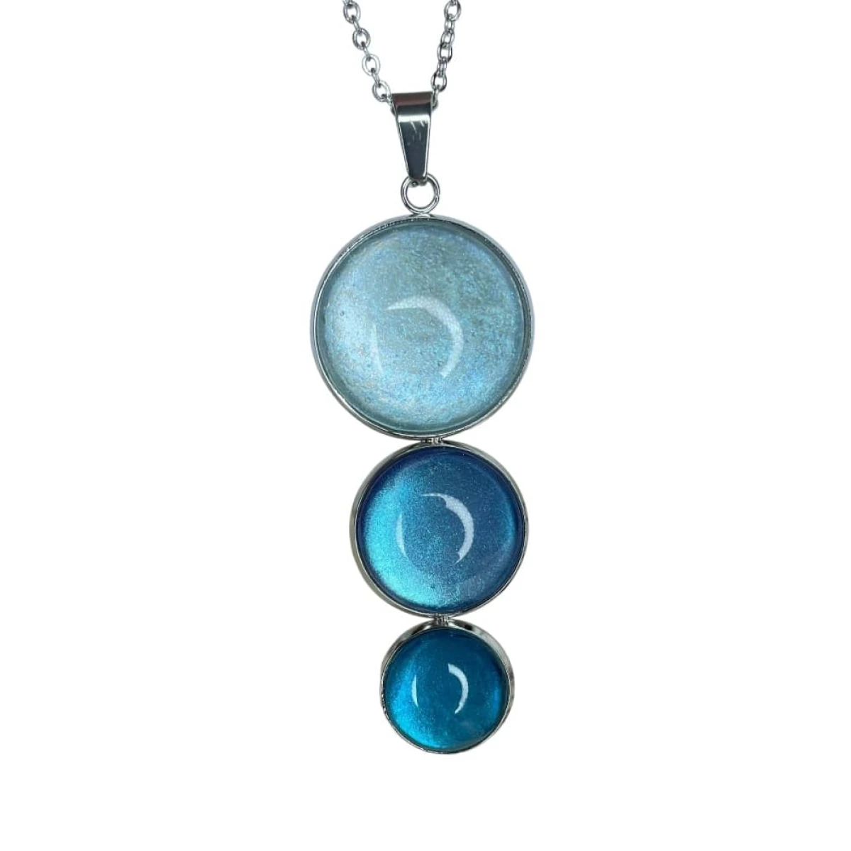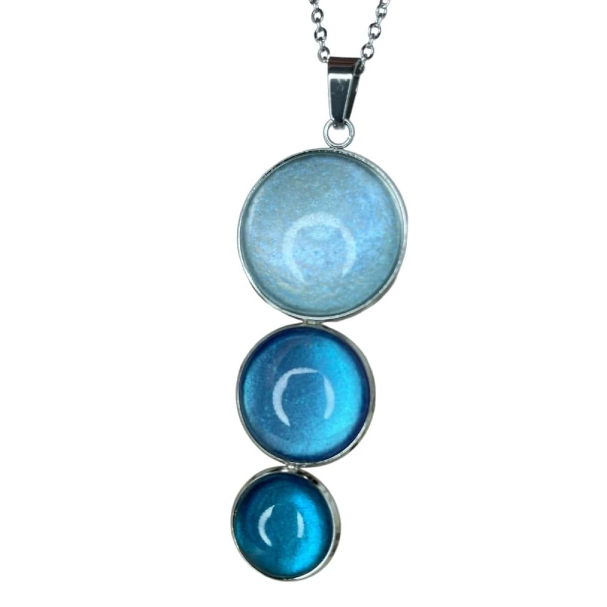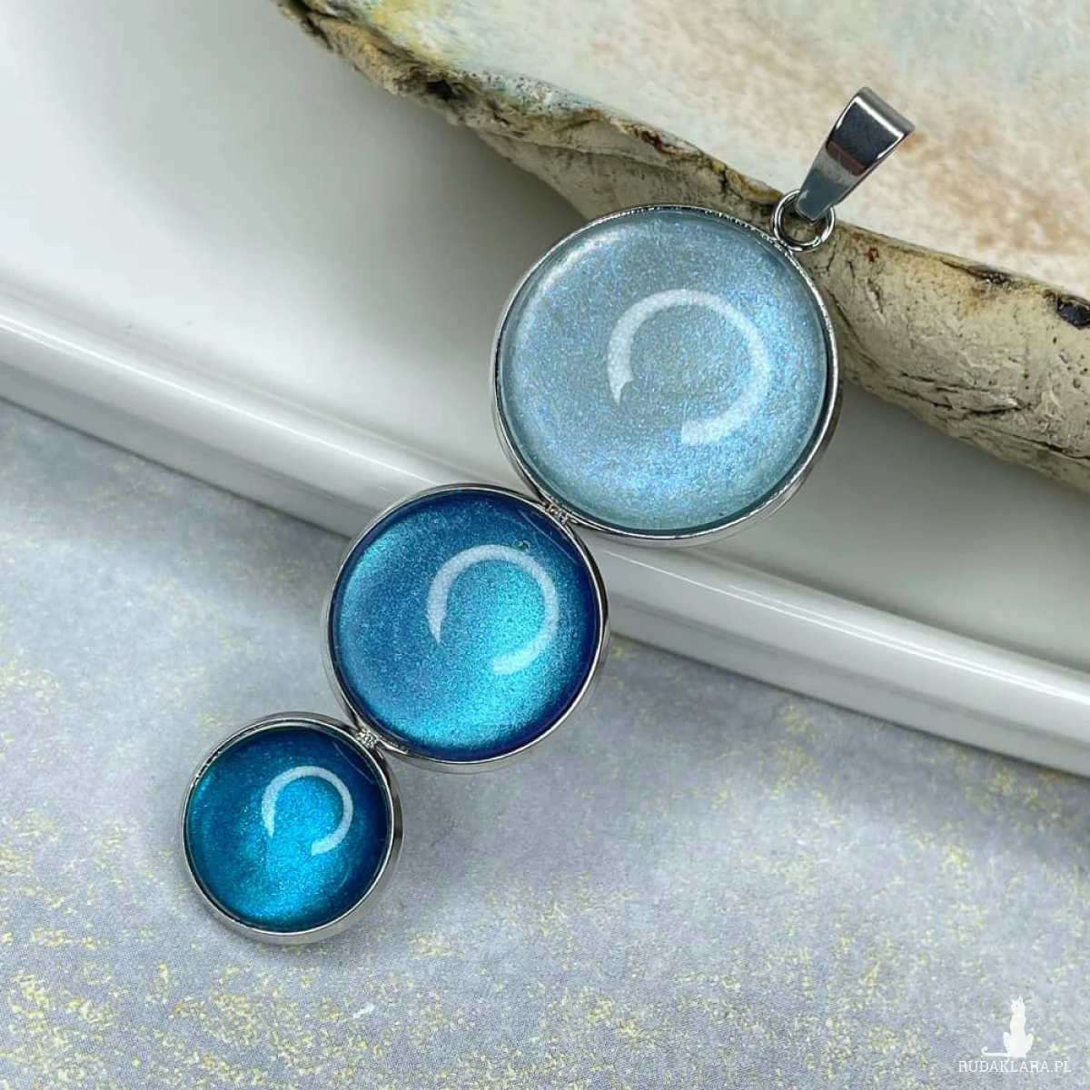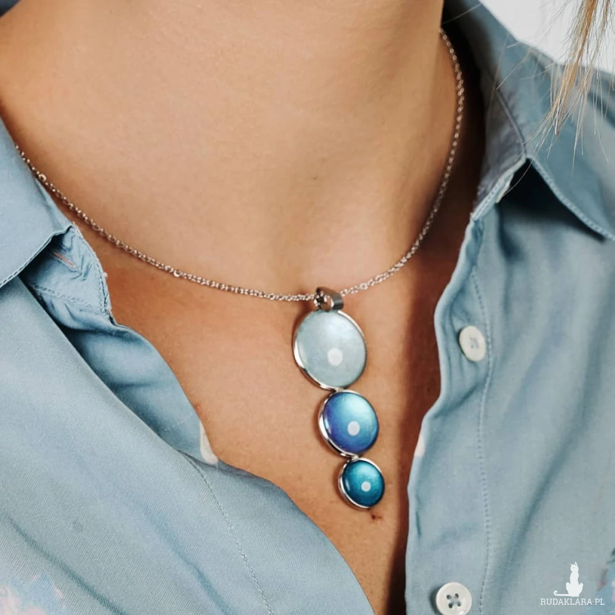 Ten pełen blasku wisior jest częścią kolekcji “W blasku perłowego księżyca”. Wisior wykonany jest z ręcznie malowanych kaboszonów umieszczonych w bazie ze stali szlachetnej. Szklane elementy zachwycają subtelnym, opalizującym blaskiem, który jest niczym odbicie księżyca na tafli wody. Wisior mieni się w świetle, przyciągając wzrok i dodając elegancji każdej stylizacji. Ten dodatek jest idealny dla osób ceniących sobie wyrafinowaną biżuterię. Do kompletu dostępne są kolczyki i bransoletka. Materiał: stal szlachetna, malowane ręcznie szkło Wykończenie: połysk Długość wisiorka: ok 6,2 cm Średnica kaboszonu: 20; 16; 12 mm Waga wisiorka: ok 1,6 g SKU: e26/m31 Jak dobierać komplety? Kolory na zdjęciach mogą się różnić ze względów technicznych. Aby dobrać identyczny odcień, zwróć uwagę na numer SKU produktu. Pierwsza część to numer modelu, a numery po “/” to kolor, np. /17 oznacza morski perłowy. Produkty z tym samym SKU po "/" mają identyczny kolor. Dzięki temu możesz łatwo tworzyć komplety, mając pewność, że biżuteria jest w tym samym odcieniu. Stwórz własny komplet! Jeśli nie ma biżuterii w wybranym modelu lub kolorze którego szukasz, możesz ją zamówić indywidualnie. Wyślij do nas maila z nazwą, numerem modelu i kolorem, a my w miarę możliwości wykonamy biżuterię na zamówienie. Termin realizacji ustalamy indywidualnie. Biżuteria zostanie elegancko zapakowana. W przypadku zakupu kompletu, biżuteria zostanie zapakowana razem. Kolory na zdjęciach mogą delikatnie różnić się od rzeczywistych.