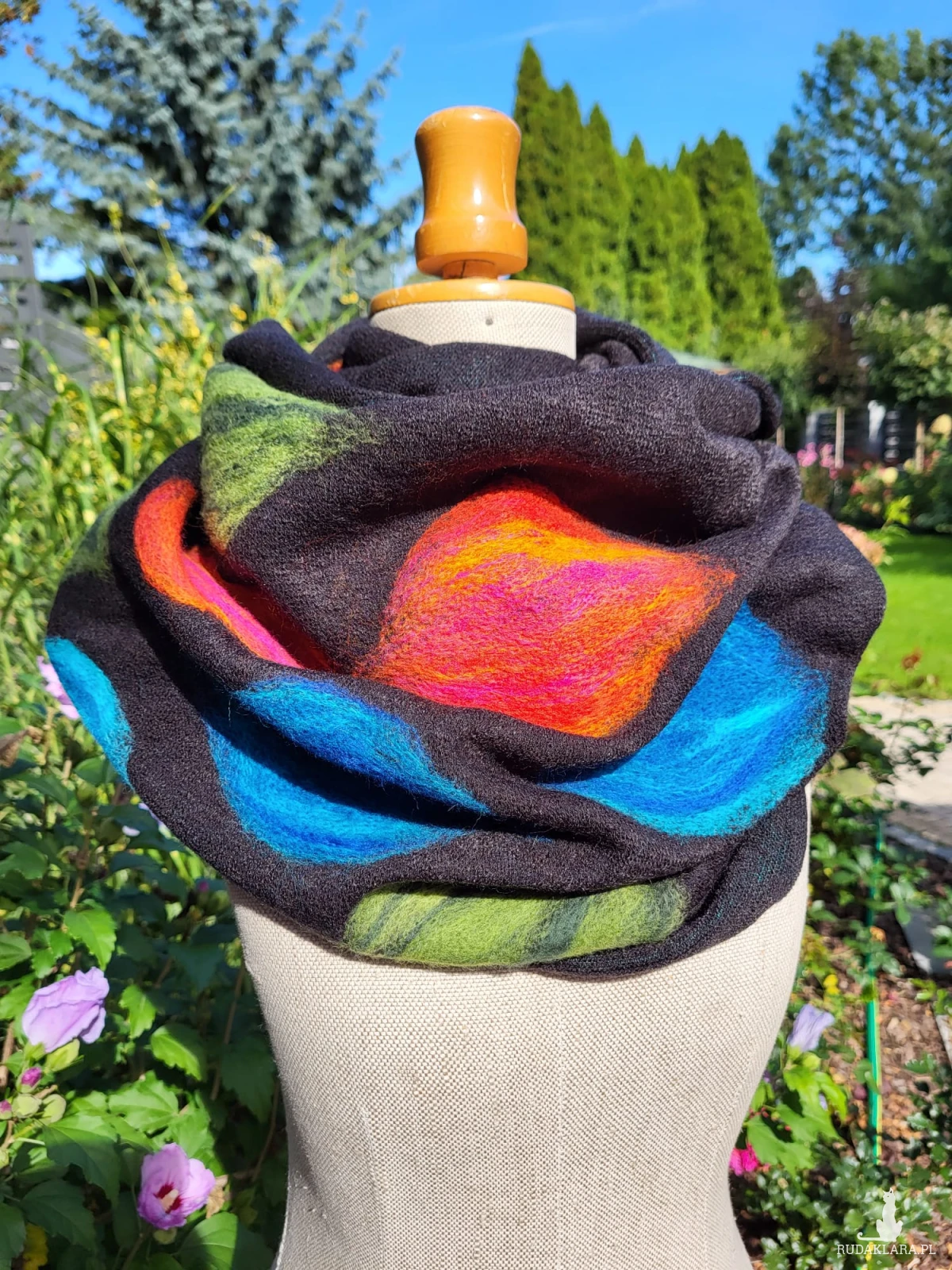 Super prezent na dzień mamy czarny filcowany wełniany miły i ciepły komin handmade, zdjęcie trochę przekłamuje kolor ten granat jest bardziej podobny do jeansu tak jak na zdjęciu dołączonym przykładowym- tuba, owijany dwa razy, filcowany wełną merynosów, bardzo ciepły i miły, doskonały na prezent, fantastyczny na codzienne noszenie, zwraca uwagę, dodaje koloru, nie zginiesz w tym kominie na ulicy, pojedyncze egzemplarze, polecam bestseller,czas oczekiwania tydzien