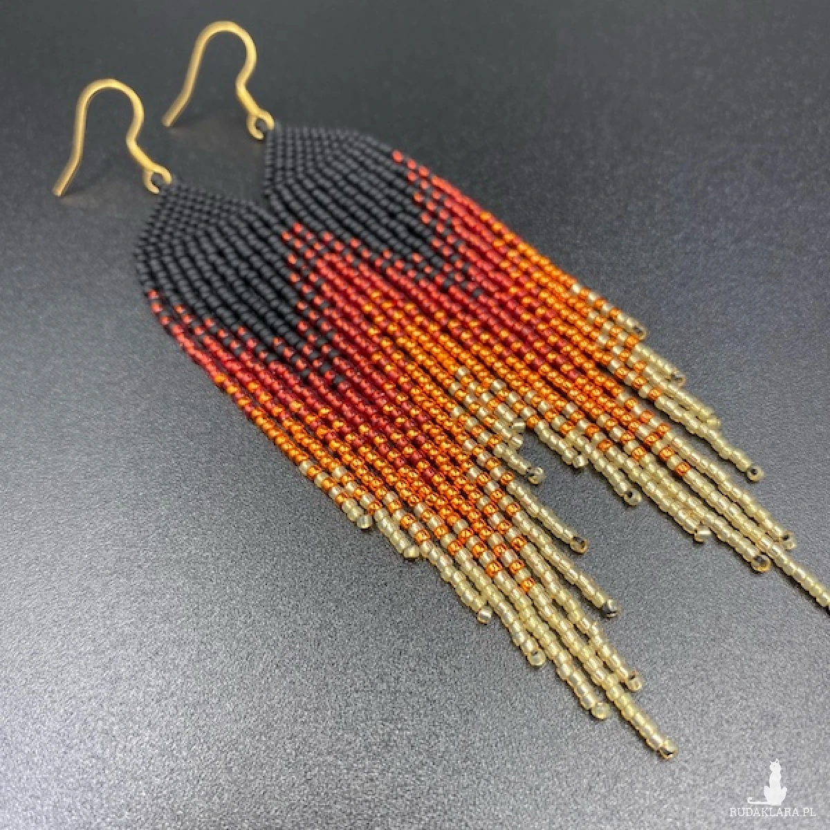 Etniczne kolczyki w 100% utkane ręcznie z najmniejszych japońskich koralików TOHO 15. Każdą pracę wykonuję bardzo starannie. Kolczyki są bardzo lekkie.