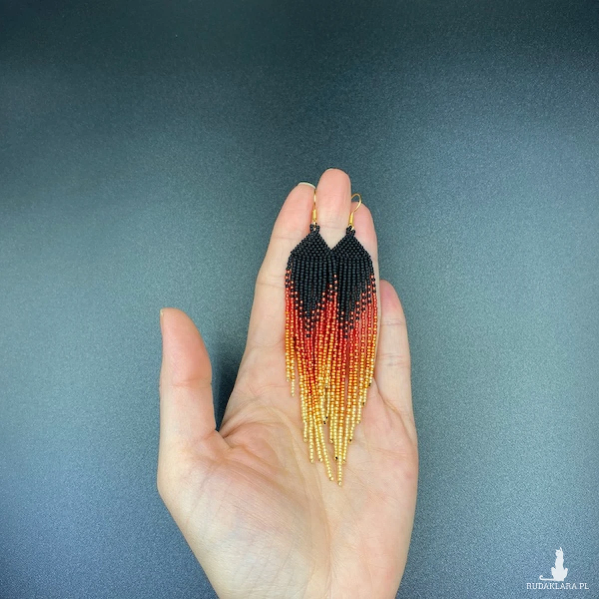 Kolory kolczyków: czarny, czerwony, pomarańczowy, żółty.