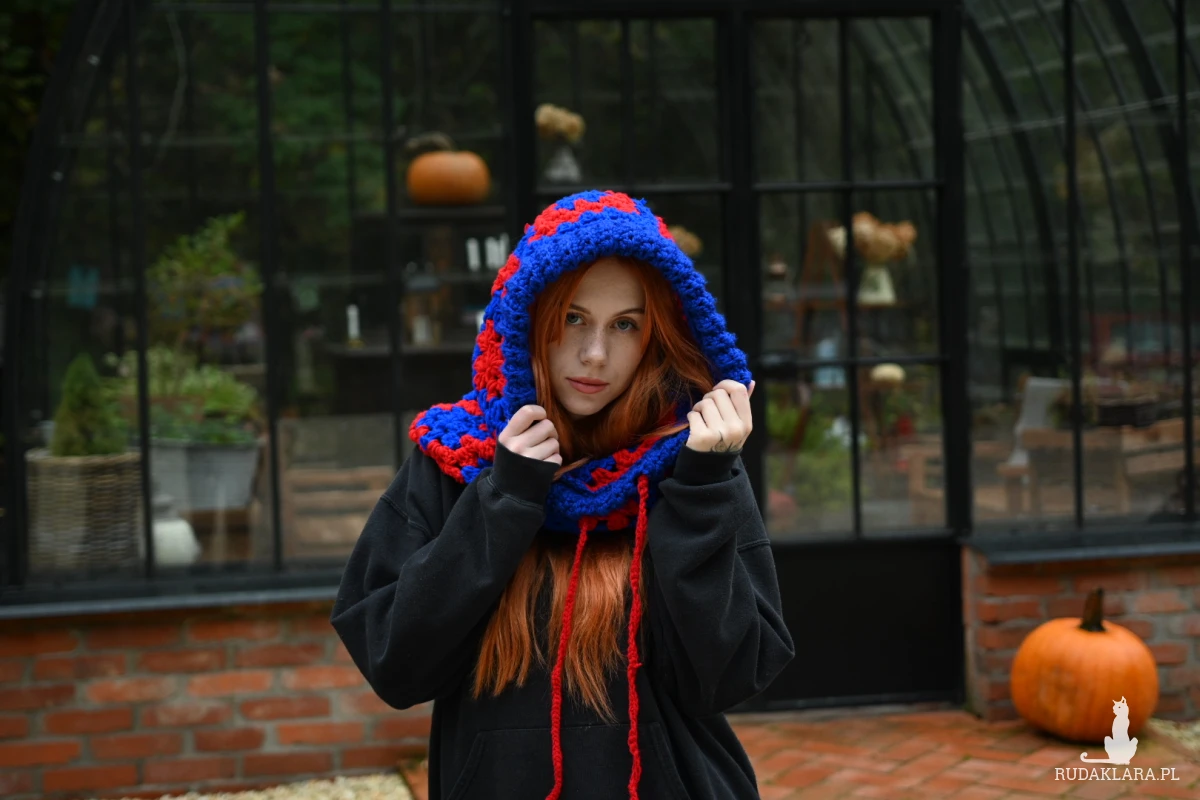 Wyróżnia się intensywnymi kolorami i starannym wykonaniem. Idealna na zimę jako kapturek lub kominiarka.