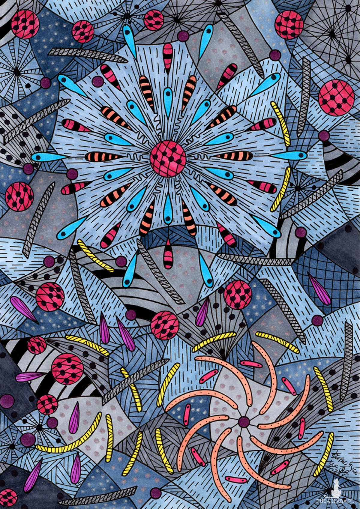 Ilustracja Abstrakcyjna, Stylizacja Geometryczna, Futurystyczny Doodle Art/Zentangle, Ekspresjonizm Liniowy