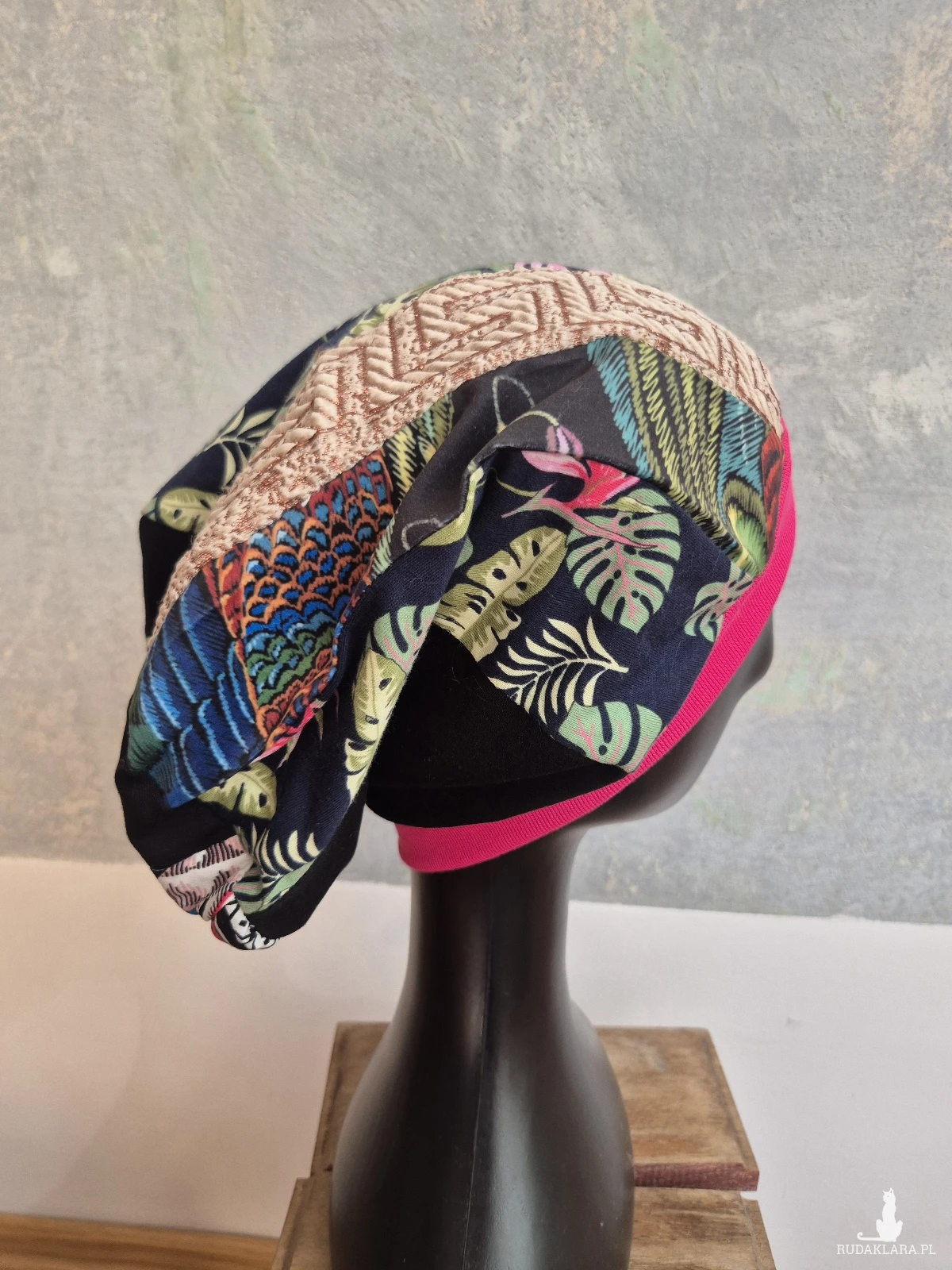Czapka na podszewce kolorowa patchworkowa rękodzieło świetna na codzienne noszenie polecam rozmiar uniwersalny Box d1
