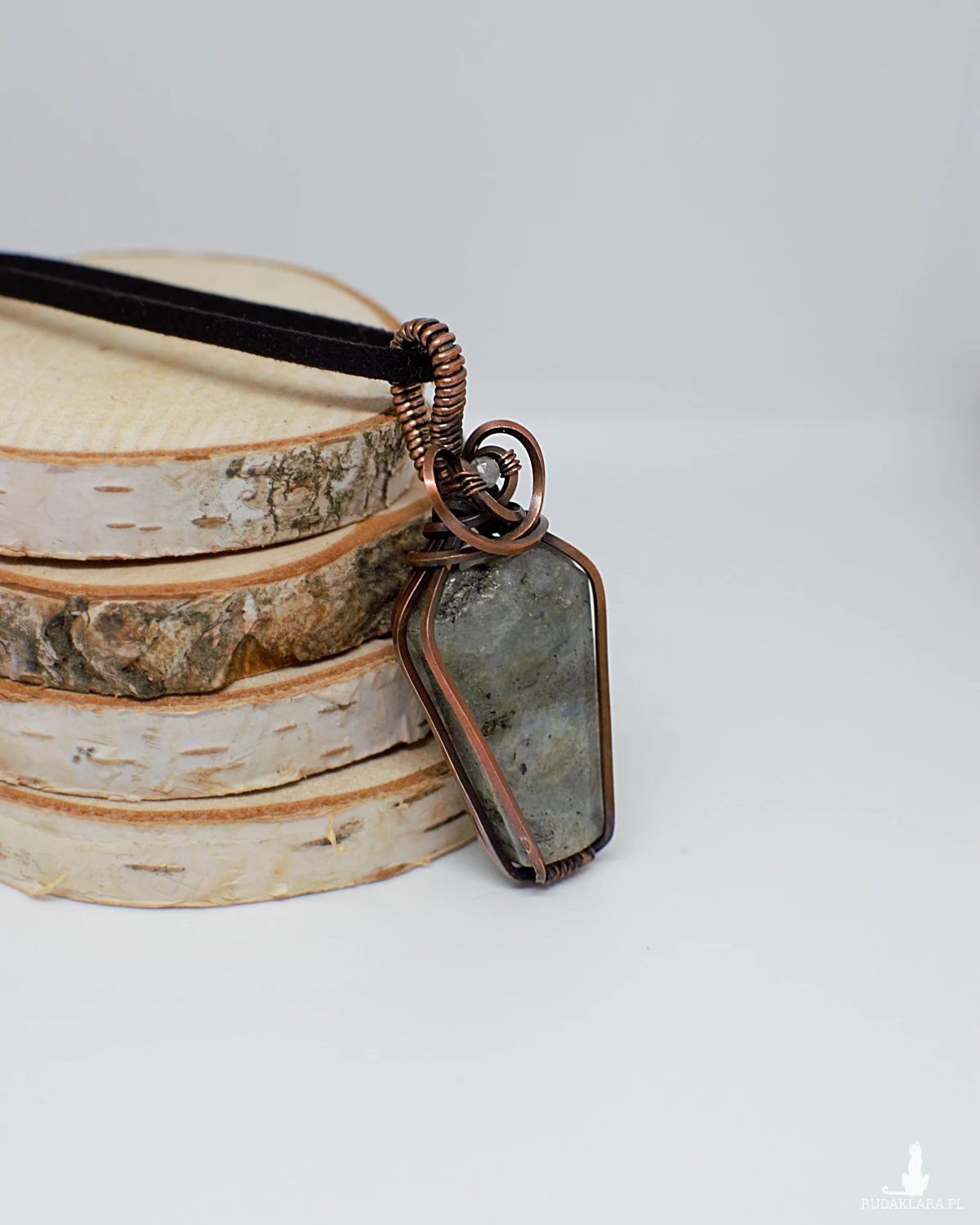 Materiały użyte: drut jubilerski miedziany, labradoryt.