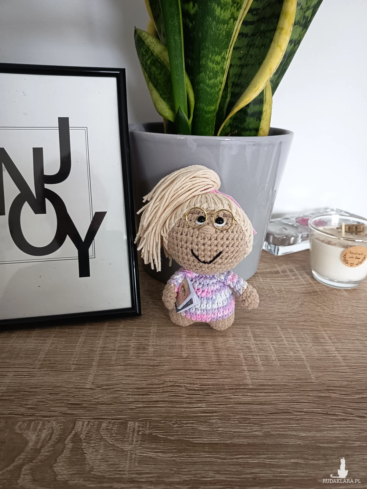 Brelok zawieszka mała blondyneczka w złotych okularach