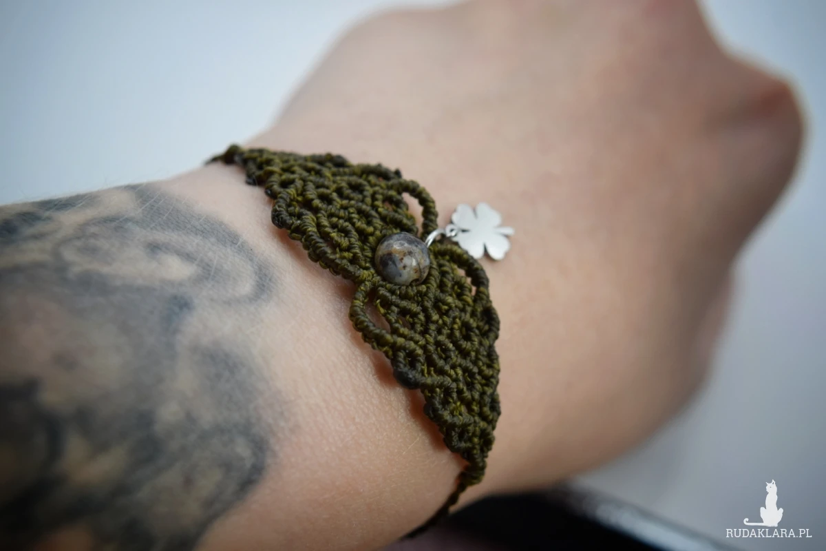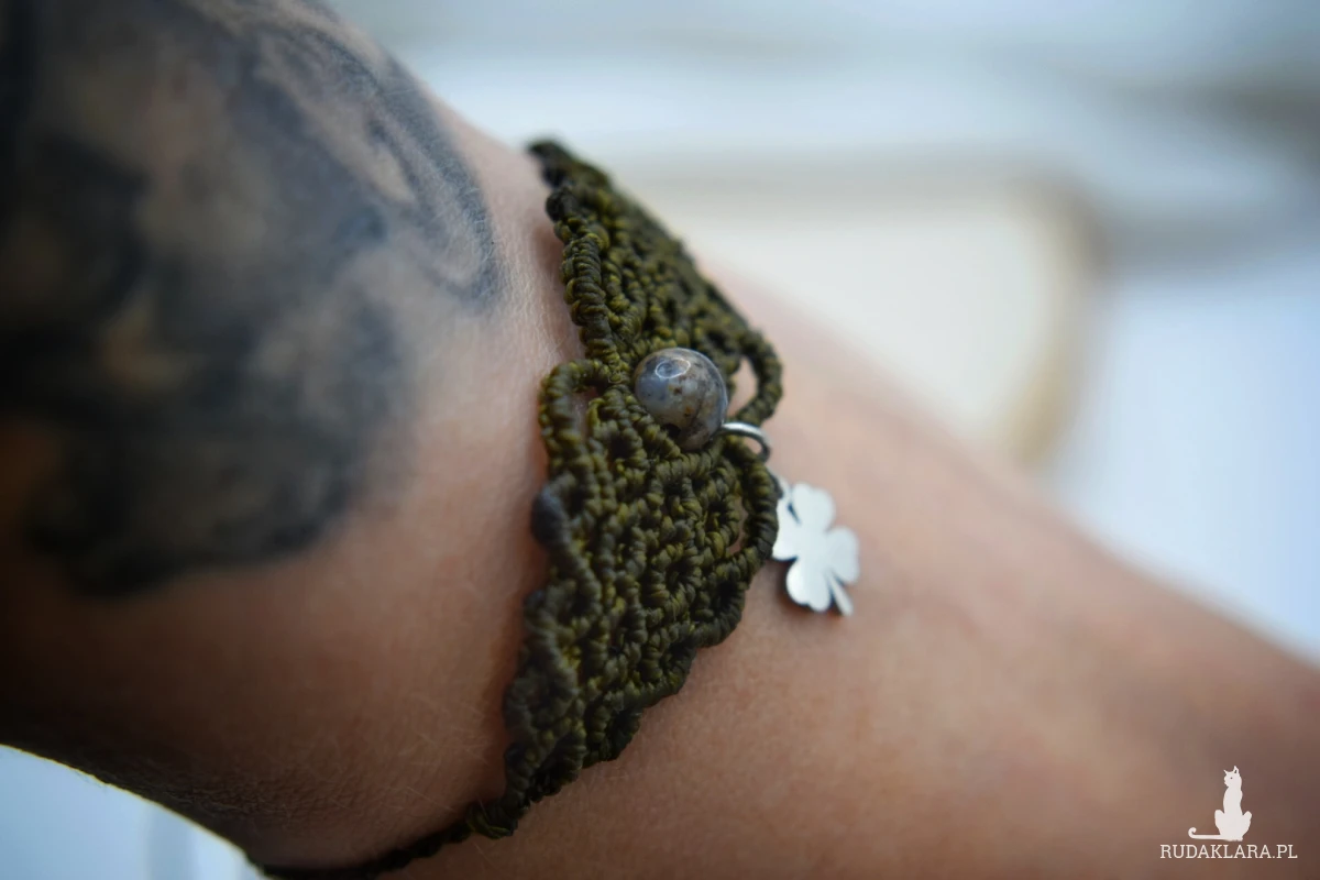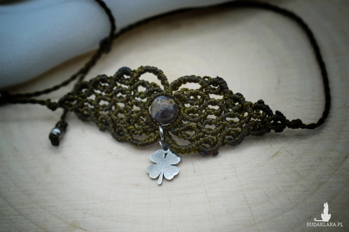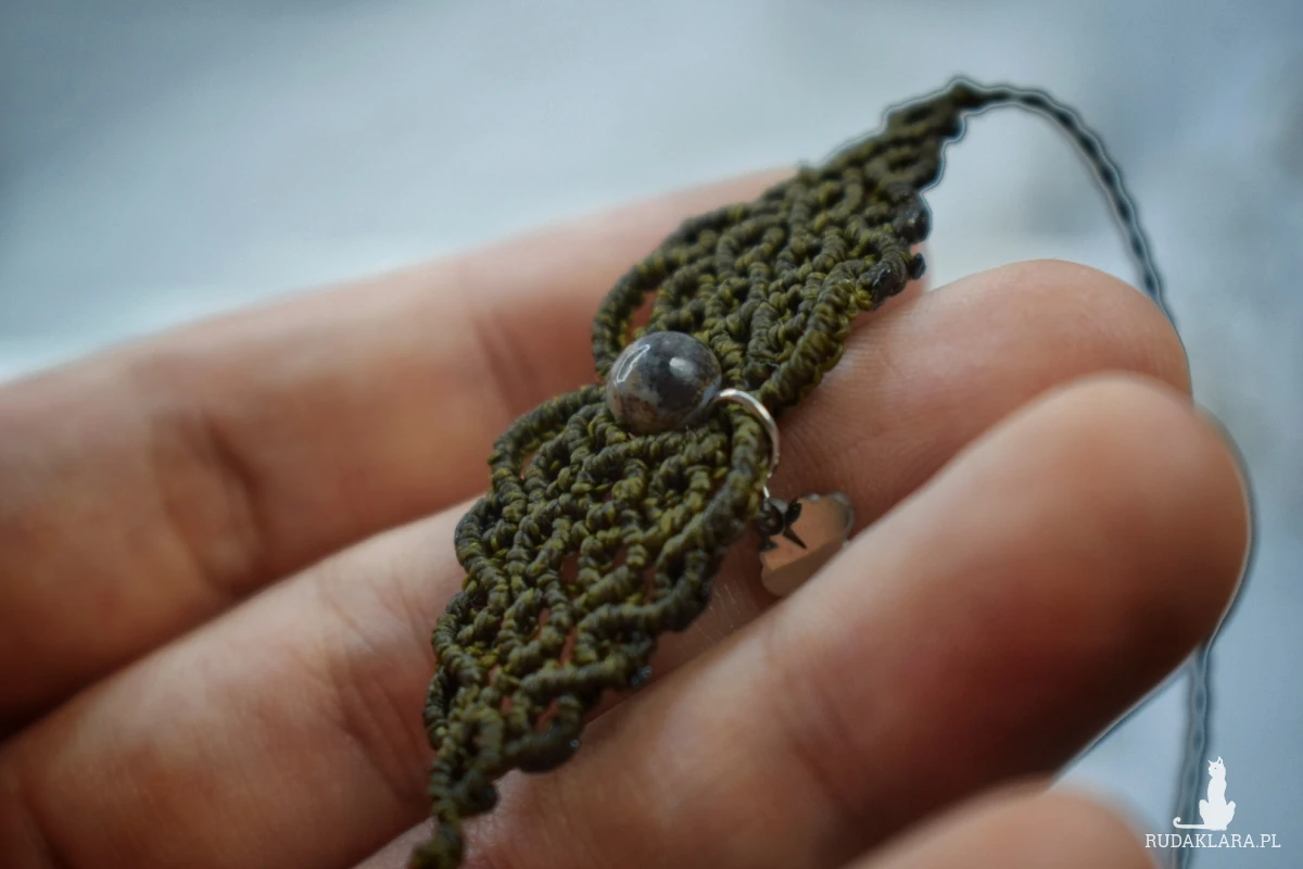 Sznurki boczne(regulacja) ok. 11x2 cm w tym zapięcie, regulowane- makramowe