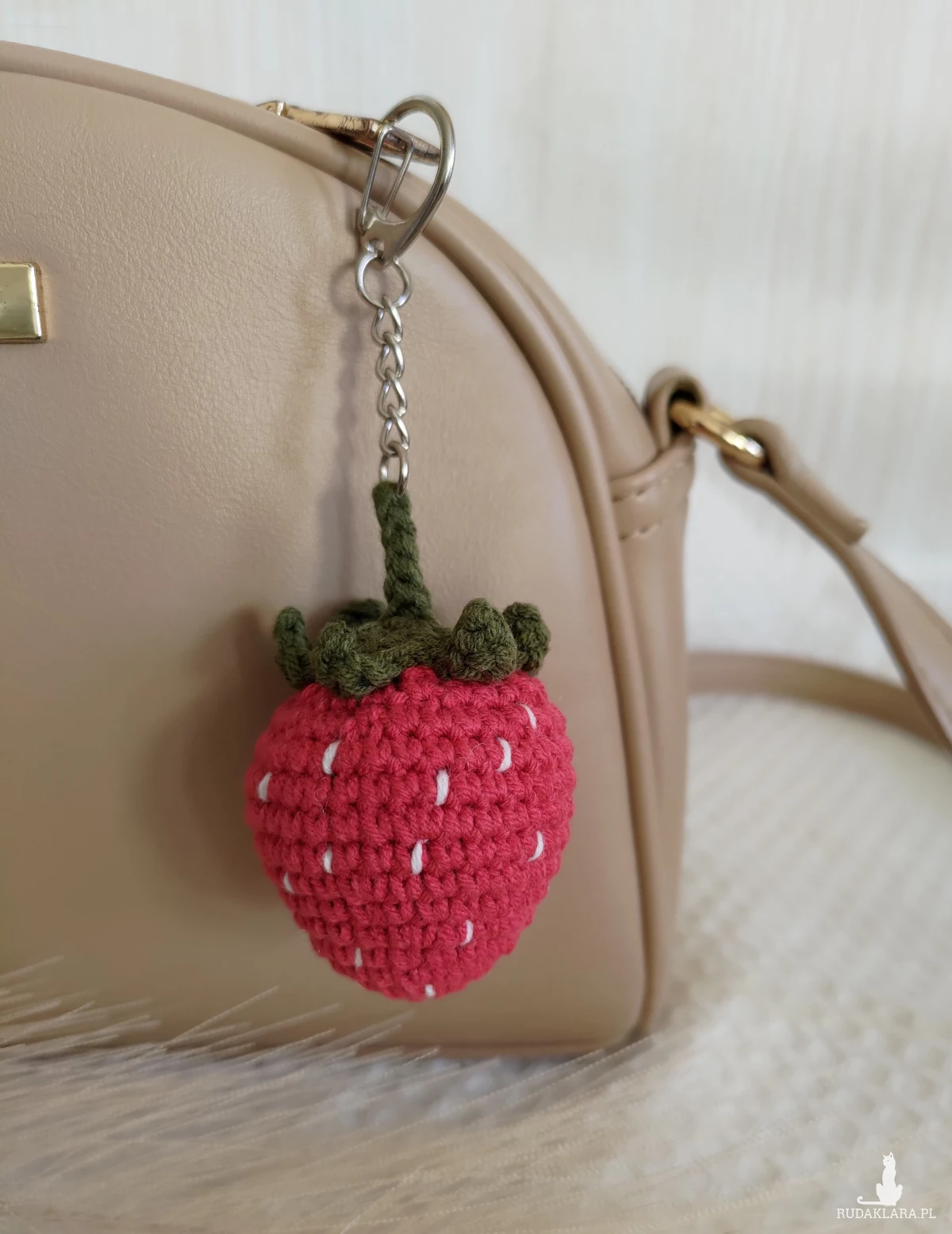 Szydełkowy letni breloczek truskaweczka będzie doskonałym dodatkiem do plecaka/torebki/kluczy oraz wspaniałym prezentem na każdą okazję i wyjątkowy moment.