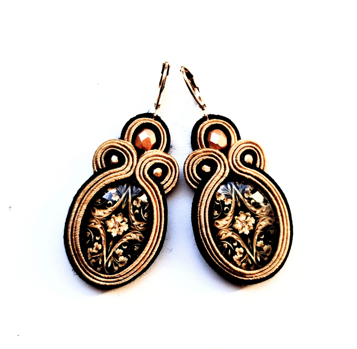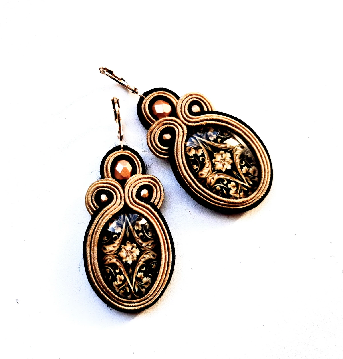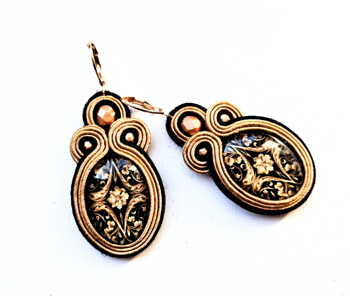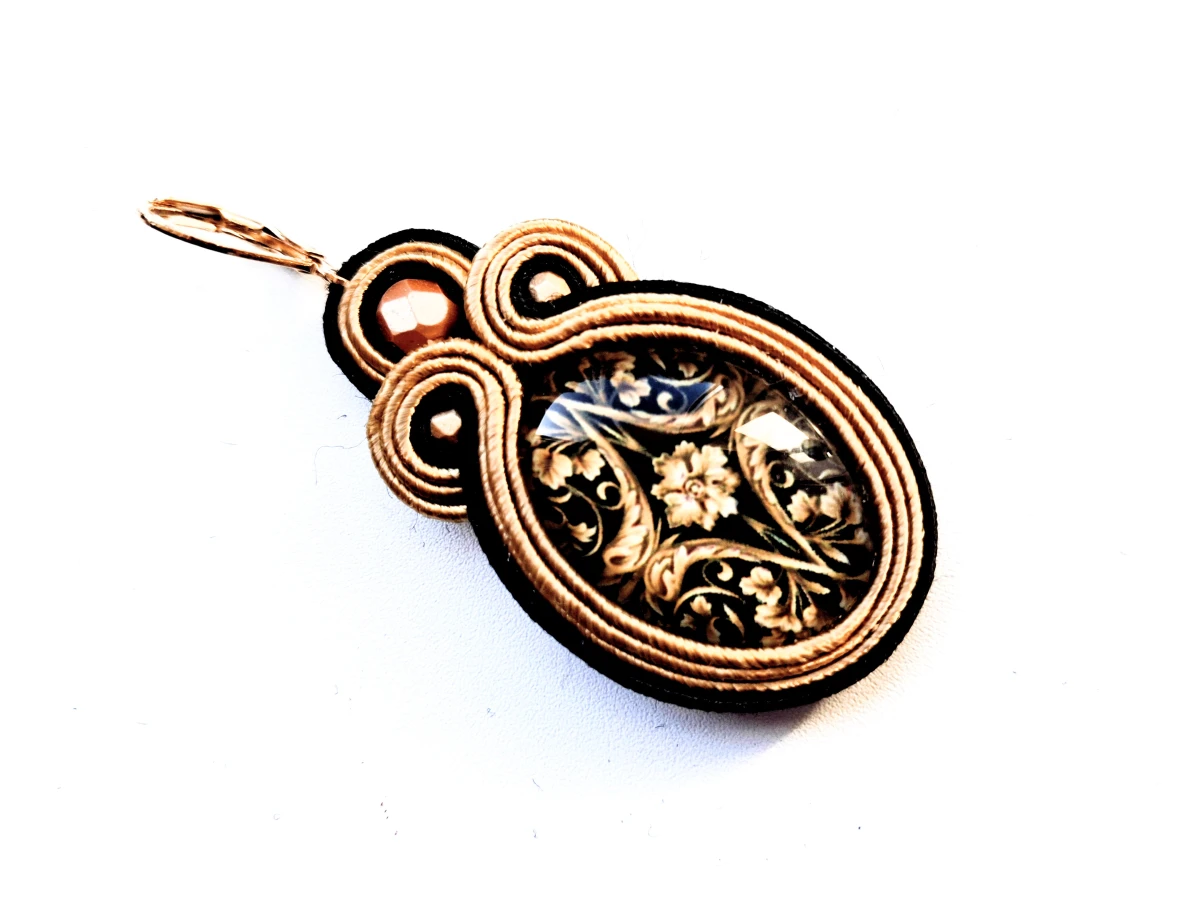 Materiał: sutasz,  szklany kaboszon z printem, koraliki Fire Polish