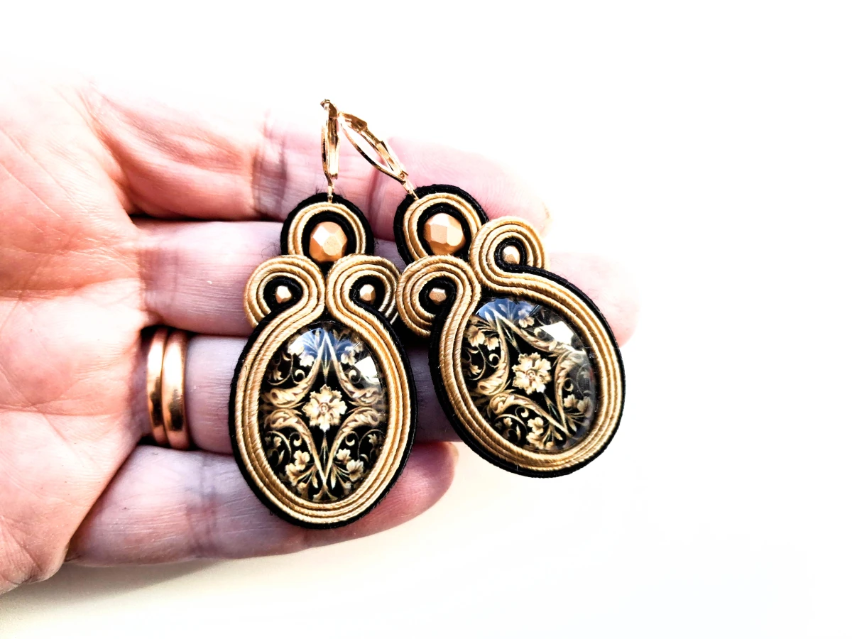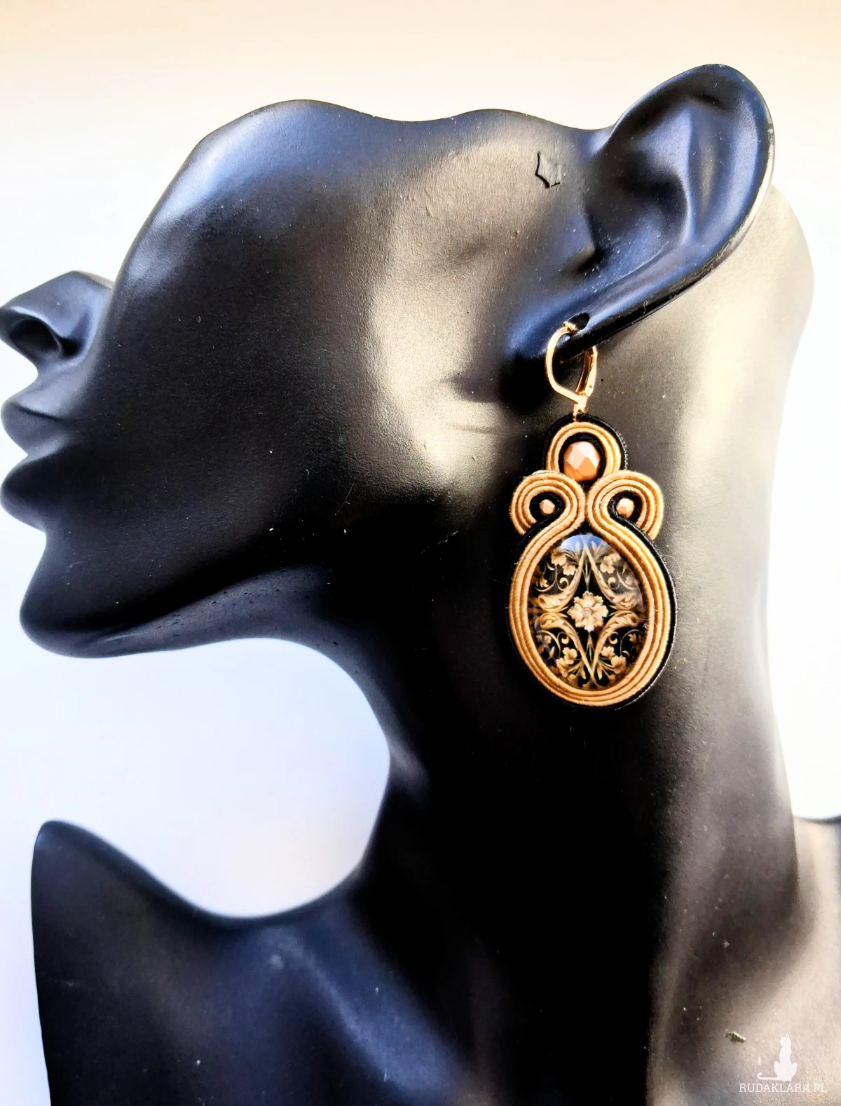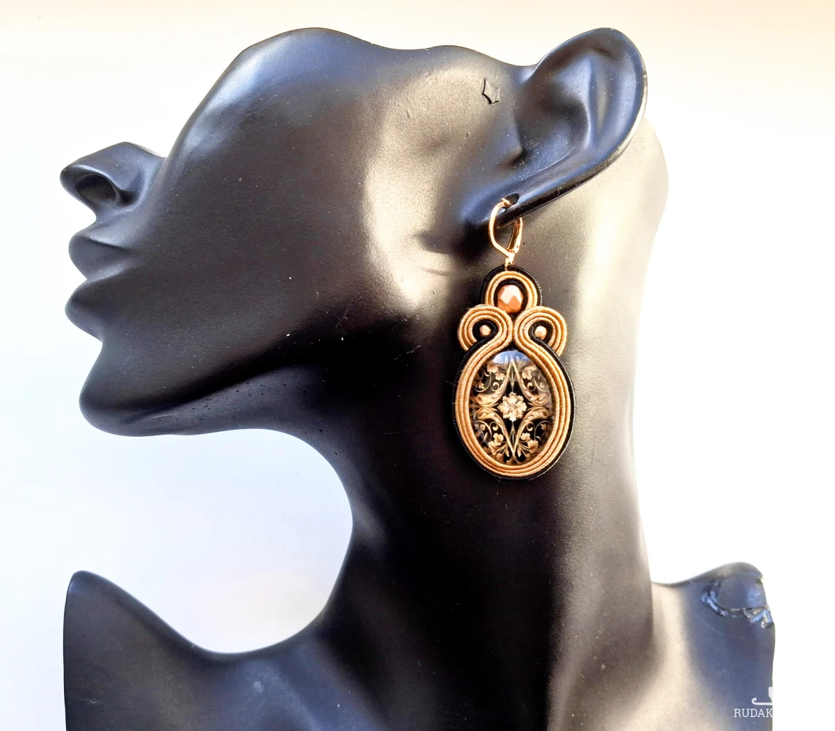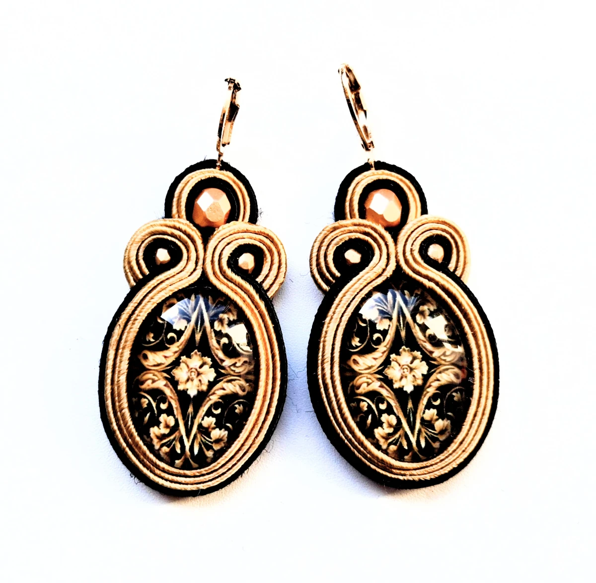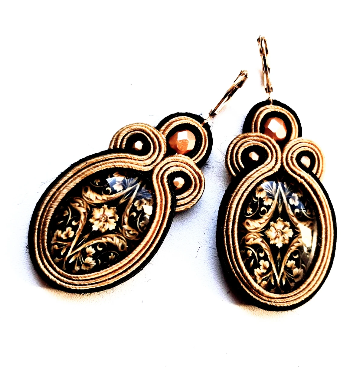Materiał: sutasz,  szklany kaboszon z printem, koraliki Fire Polish