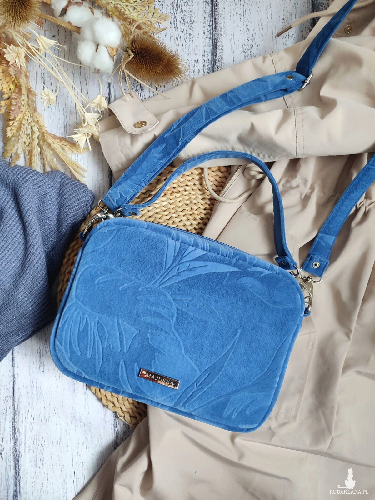 Produkty marki MAJUSKA Bags (torebki, nerki, plecaki, portfele, kosmetyczki) zostały zaprojektowane jako akcesoria odziennego użytku. Szyte są głównie z materiałów syntetycznych: ekoskóra, poliester, welur. Środki ostrożności: - Produkt nie jest przeznaczony dla dzieci poniżej 3. roku życia - ryzyko zadławienia małymi elementami (np. suwaki, zapięcia). - Trzymać z dala od ognia i wysokich temperatur - materiały syntetyczne mogą się topić lub zapalić. - Unikać nadmiernego obciążania - może prowadzić do uszkodzenia szwów, pasków lub zamków błyskawicznych. - W przypadku kontaktu z wodą lub wilgocią suszyć w temperaturze pokojowej, z dala od źródeł ciepła. - Nie prać w pralce- zalecane czyszczenie punktowe wilgotną ściereczką. Informacje o materiałach: - Produkty mogą zawierać niewielkie ilości barwników syntetycznych - w rzadkich przypadkach możliwe reakcje alergiczne przy bezpośrednim kontakcie ze skórą. - Wszystkie materiały są zgodne z obowiązującymi normami UE w zakresie bezpieczeństwa produktów konsumenckich.