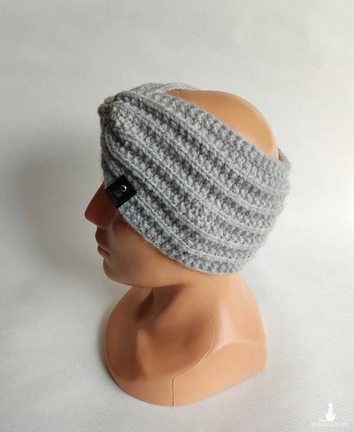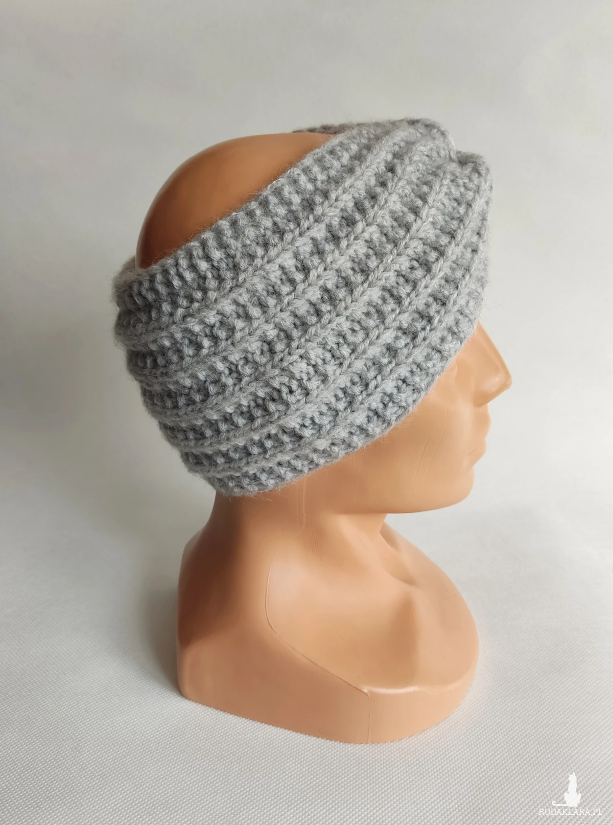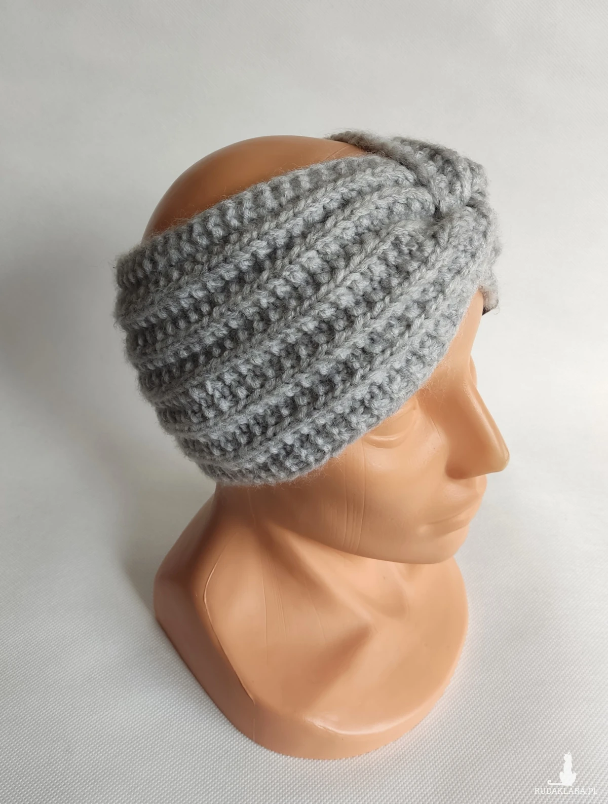Opaska ręcznie robiona na drutach.