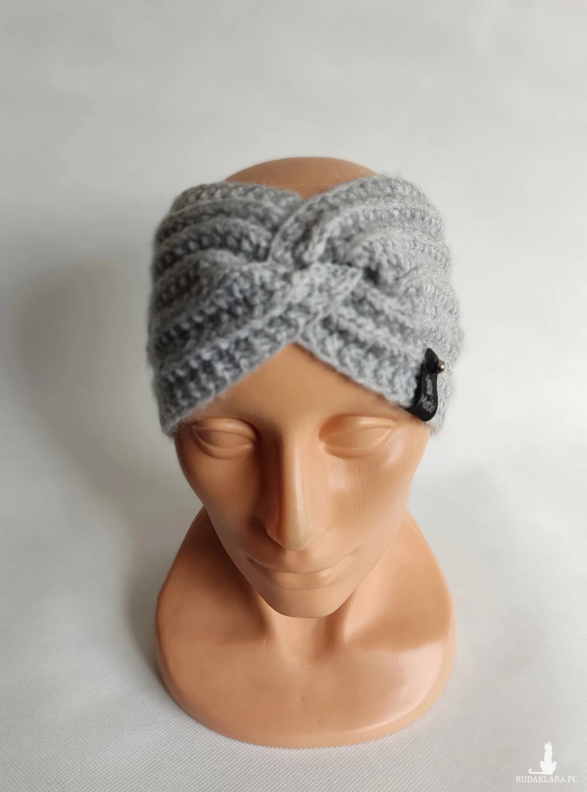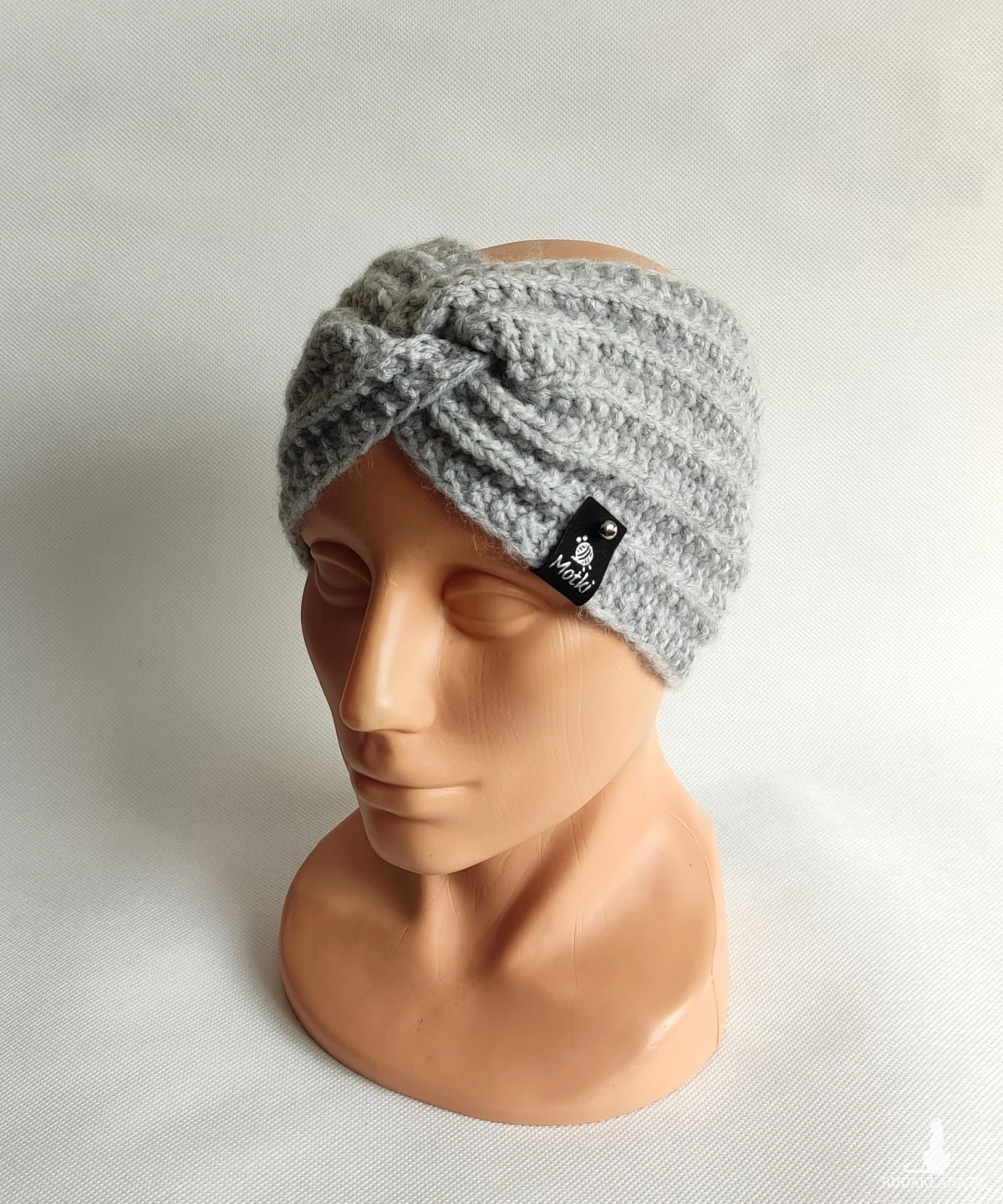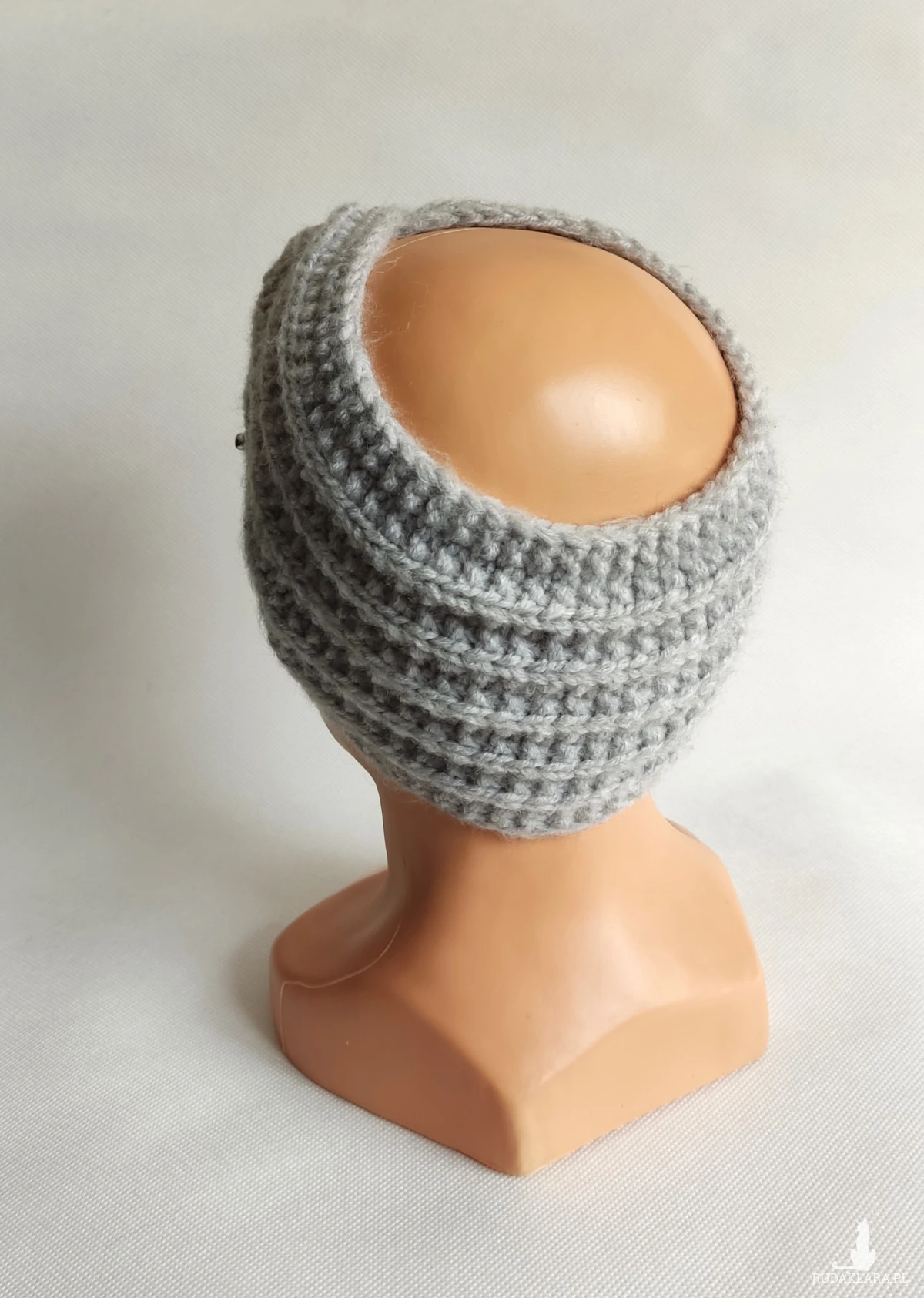 Opaska ręcznie robiona na drutach.