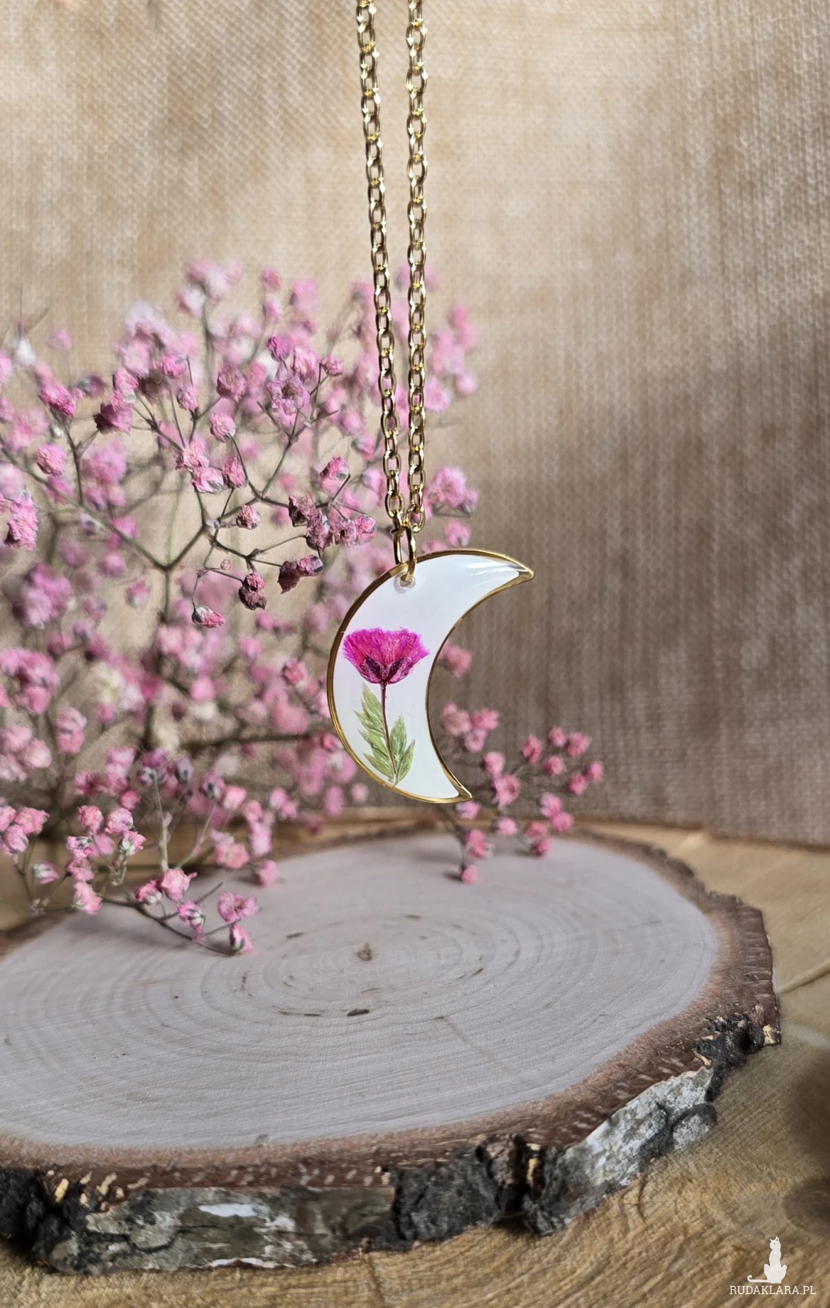 złota zawieszka złoty wisiorek naszyjnik żywica z żywicy kwiaty z kwiatami księżyc kwiaty żywica biżuteria gipsówka
