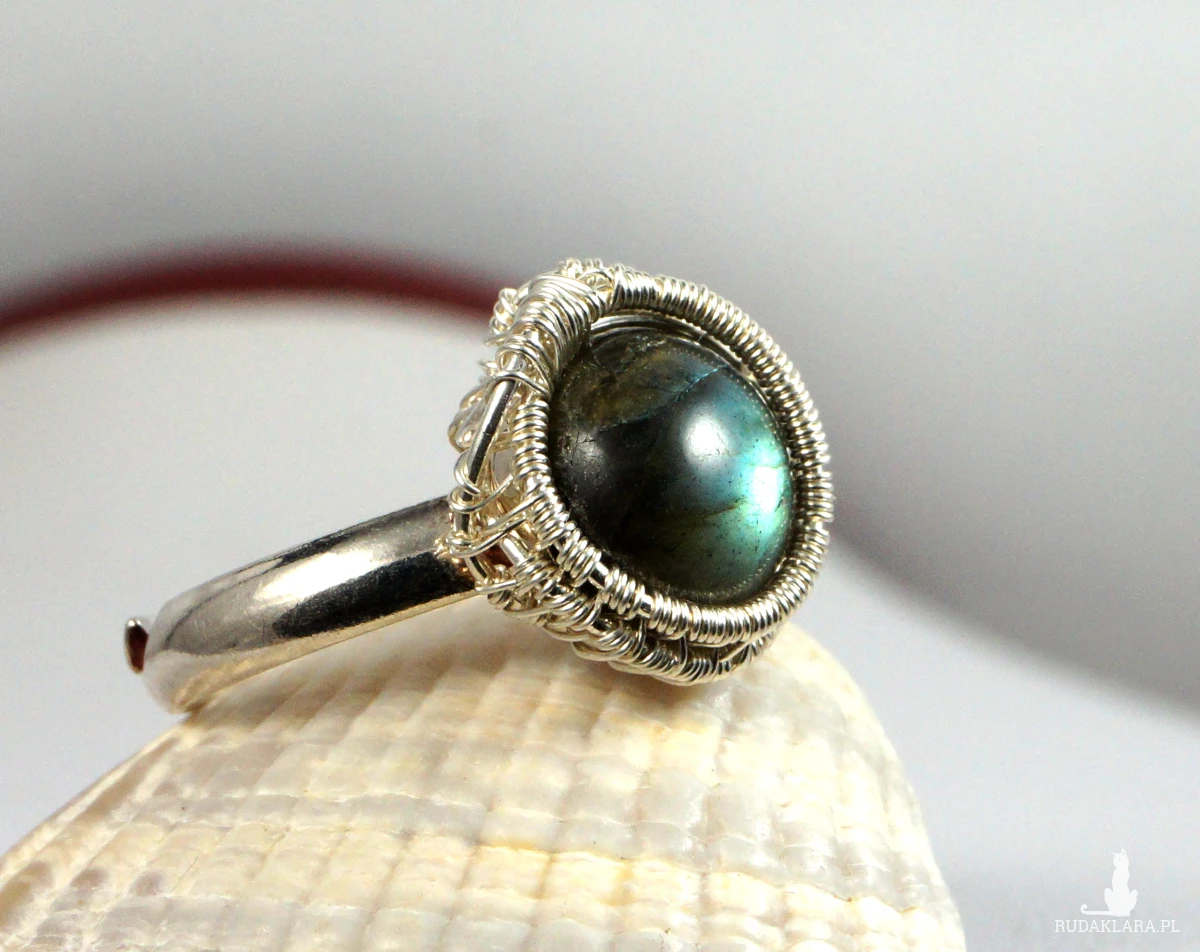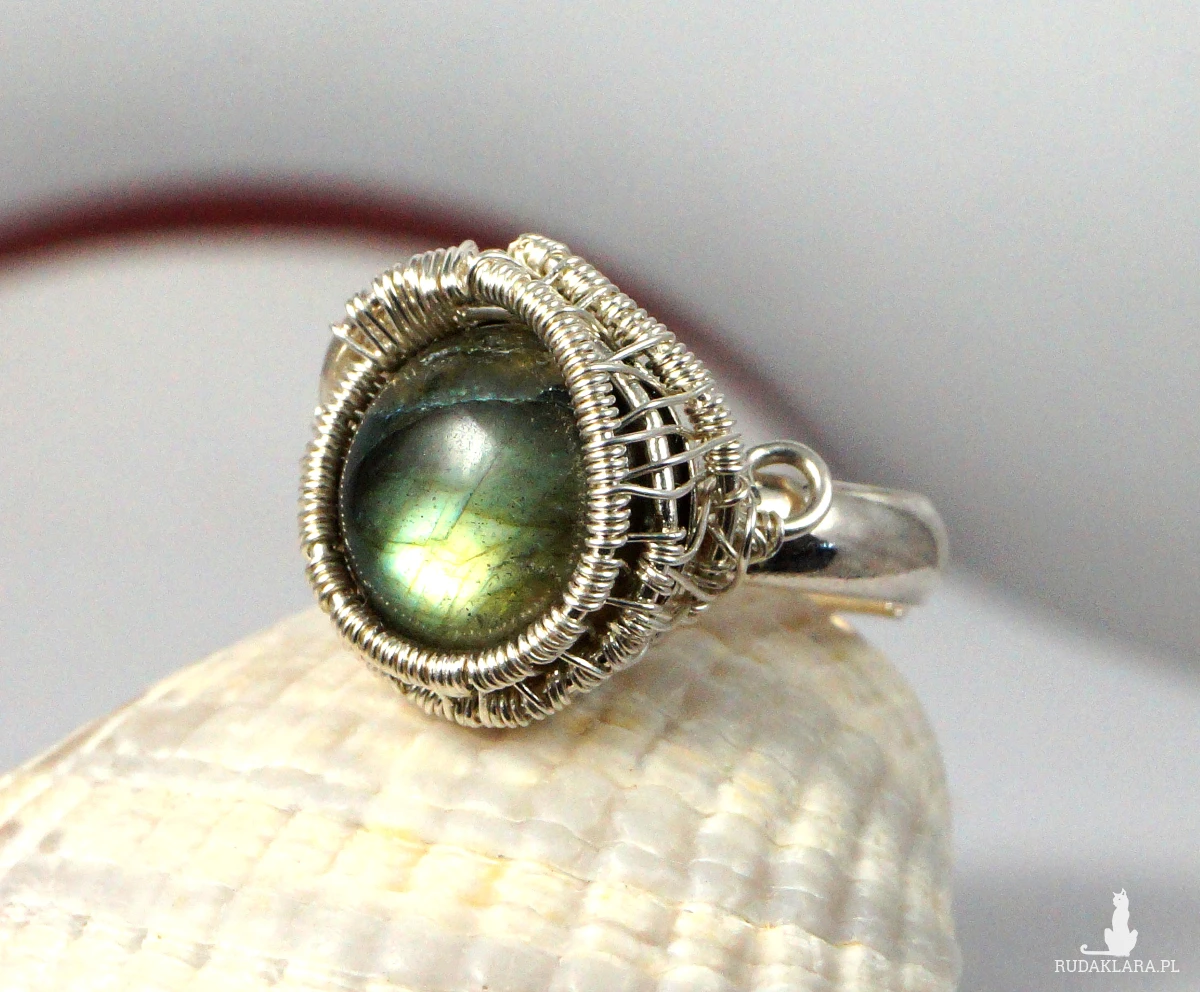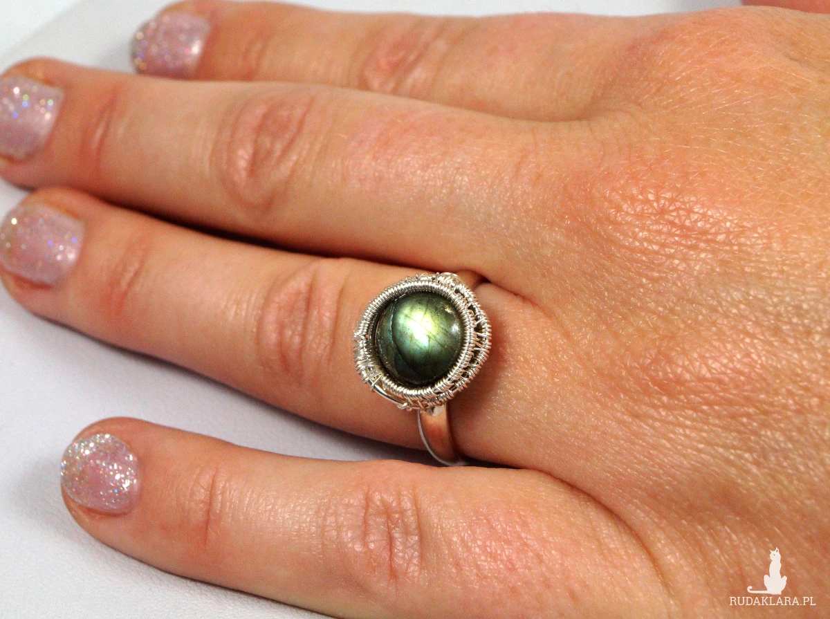 Pierścionek wykonany w bardzo pracochłonnej technice wire-wrapping.
