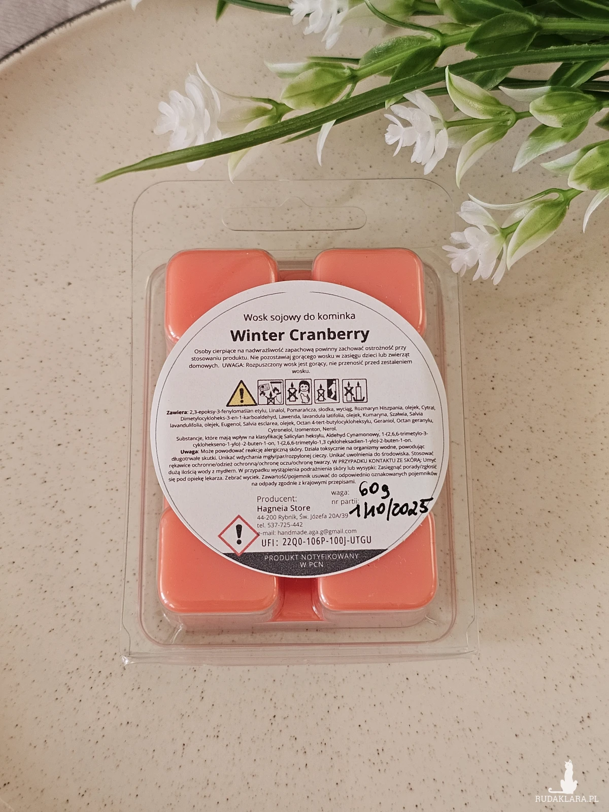 Moje produkty spełniają wymogi Rozporządzenia UE 2023/988 (GPSR) dotyczącego ogólnego bezpieczeństwa produktów. Bransoletki wykonane są z naturalnych kamieni i materiałów bezpiecznych dla skóry. Produkty zawierają małe elementy – nie są przeznaczone dla dzieci poniżej 3 roku życia. Zalecane użytkowanie wyłącznie przez osoby dorosłe. Woski i świece wykonane są z naturalnego, bezpiecznego wosku sojowego oraz certyfikowanych olejków zapachowych. Zawierają dodatek adwersantu smakowego chroniącego przed przypadkowym spożyciem. Nie sa przeznaczone dla dzieci poniżej 3 roku życia. Należy przechowywać je z dala od dzieci i zwierząt. Dbam o jakość wykonania, bezpieczeństwo użytkowania oraz przejrzystość informacji o każdym produkcie.