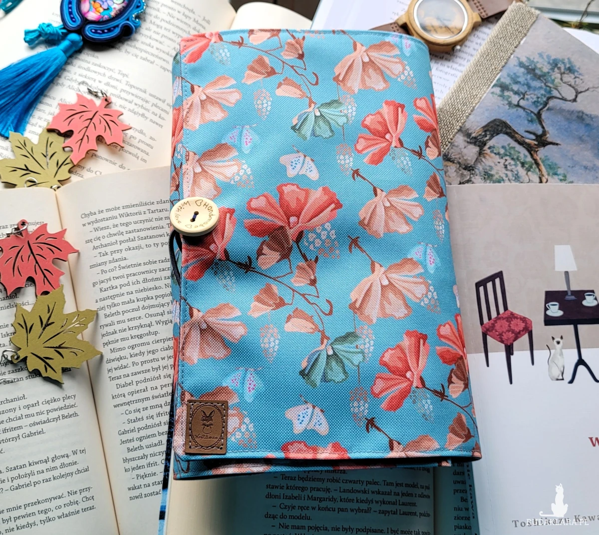 - zapięcie na gumkę, dzięki czemu książka się nie otwiera, a okładka dostosowuje się do grubości tomu;