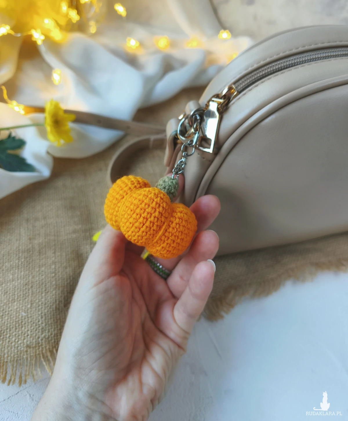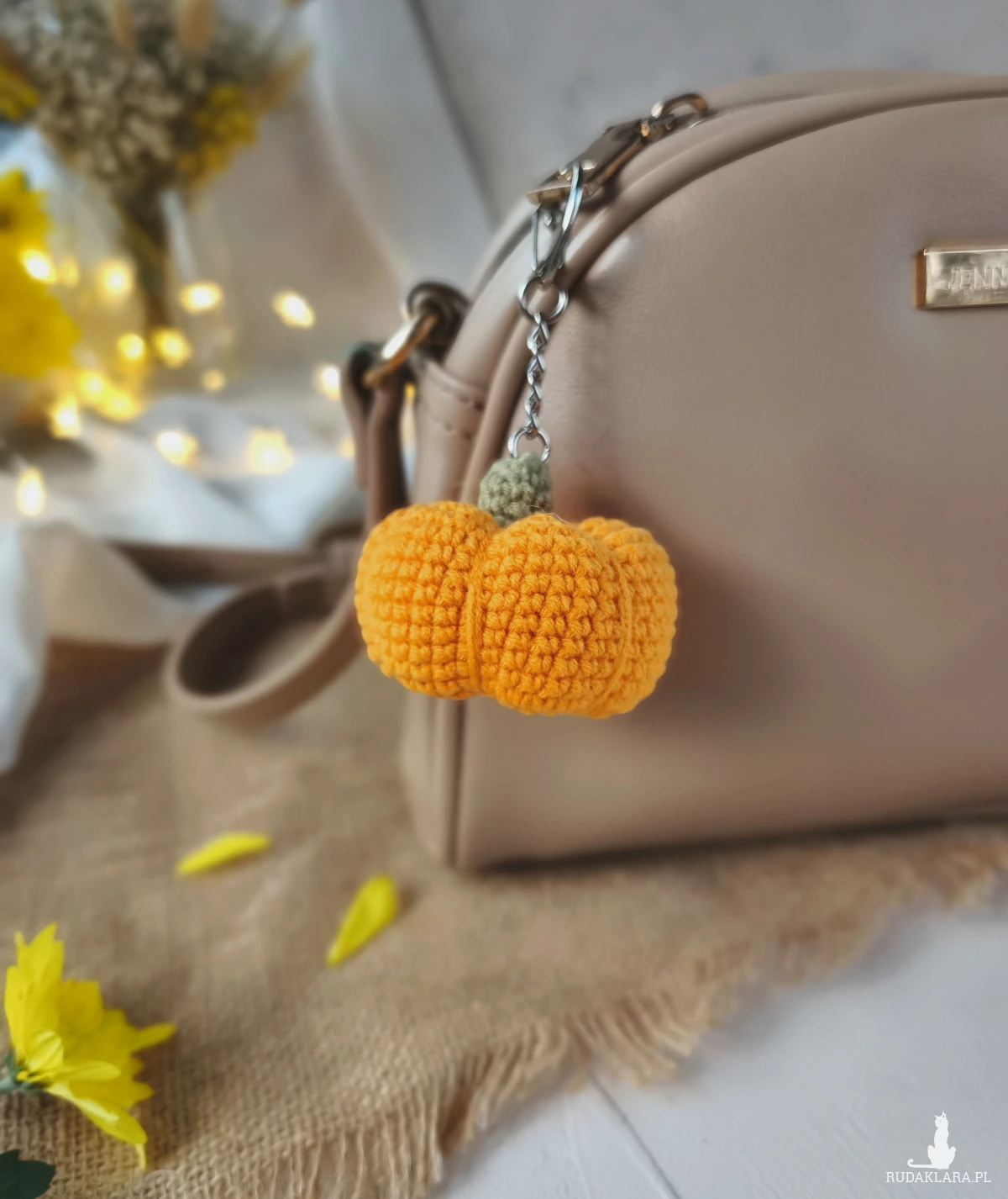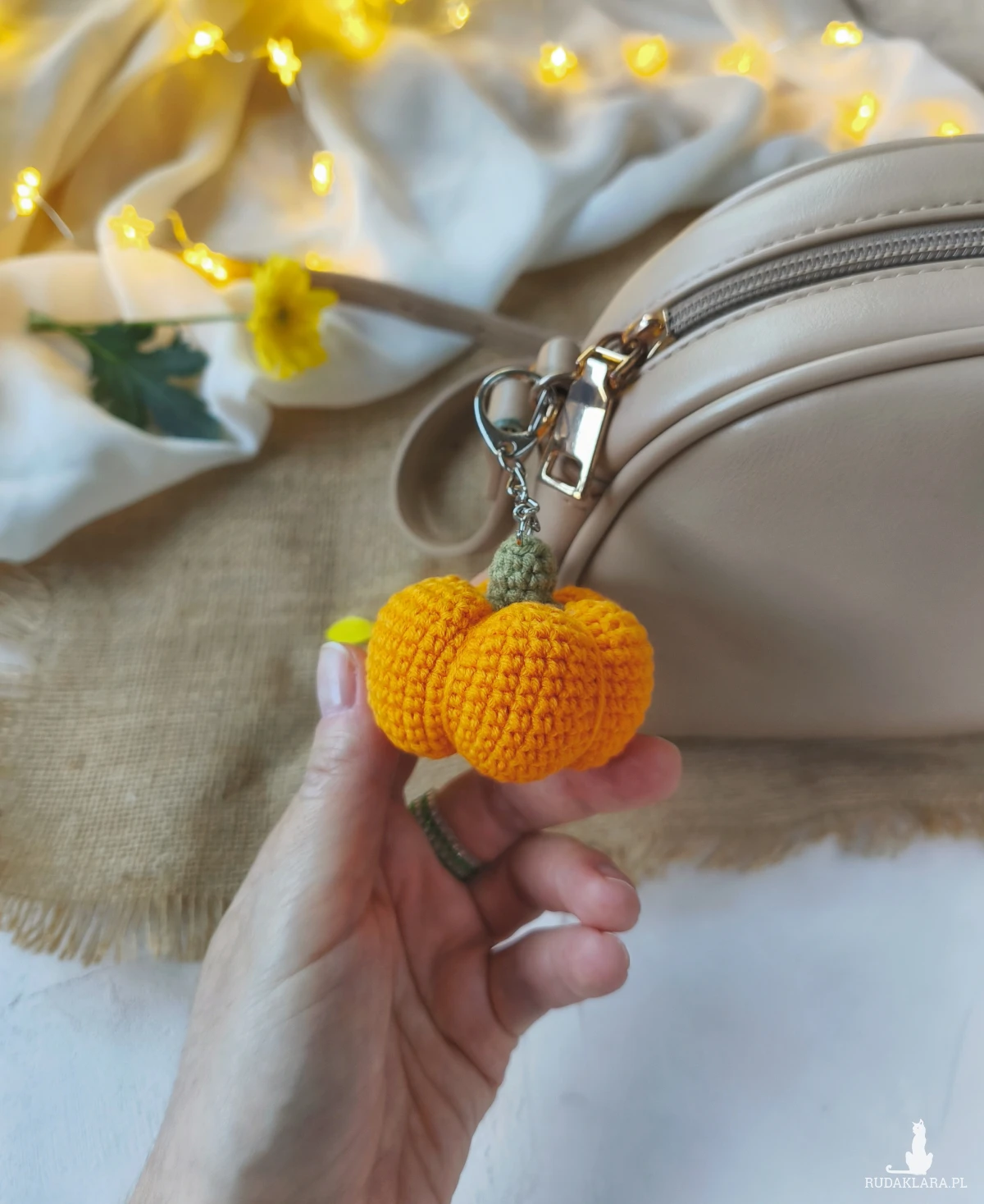 Szydełkowy breloczek dynia - mały jesienny akcent do codziennej stylizacji.