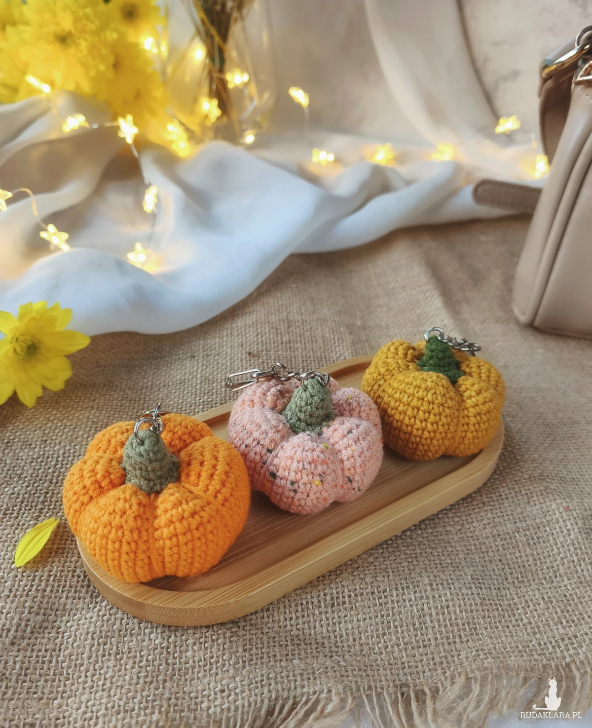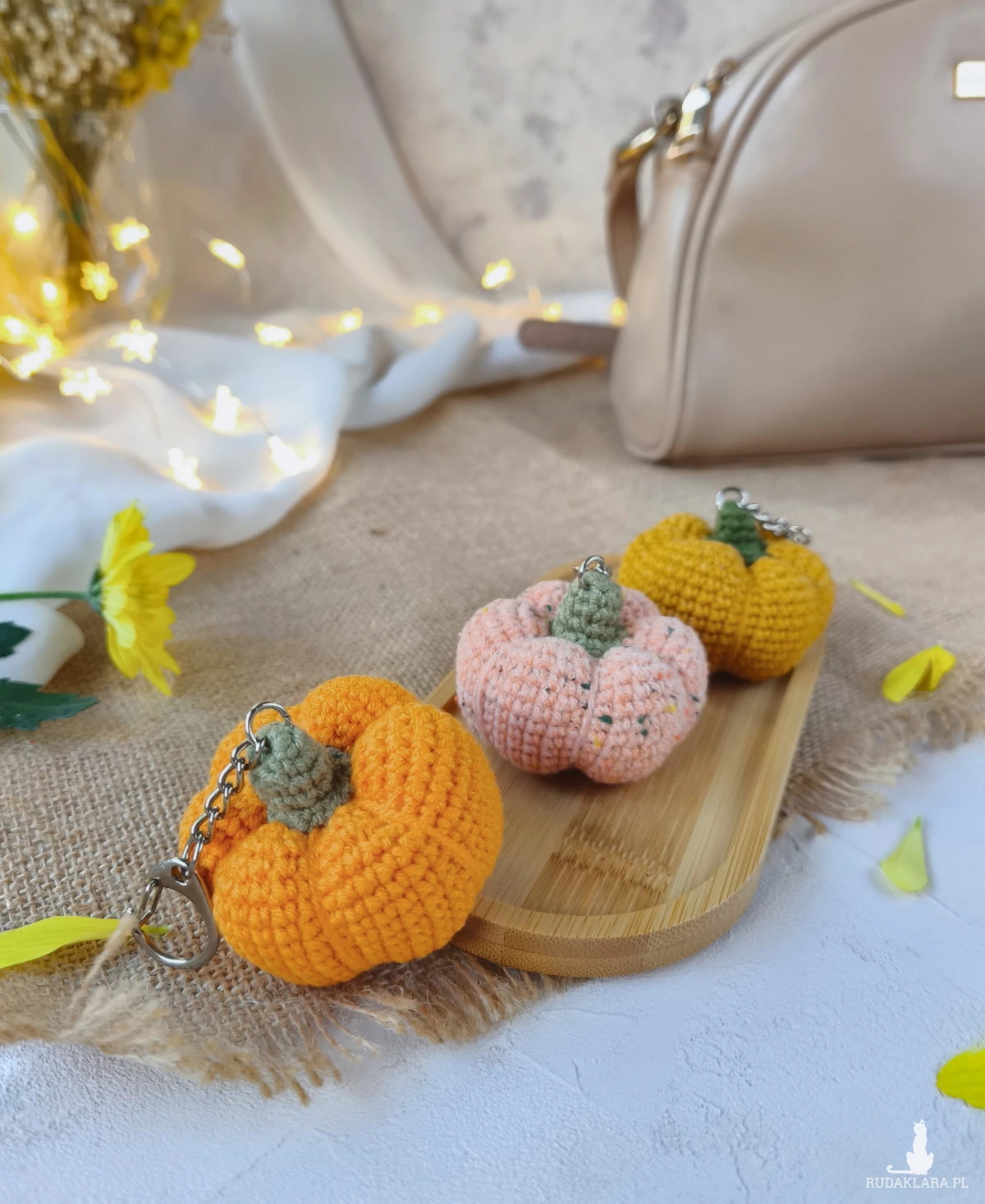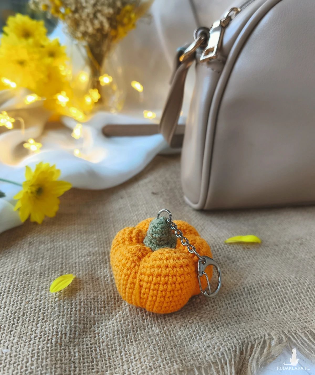 Szydełkowy breloczek dynia - mały jesienny akcent do codziennej stylizacji.