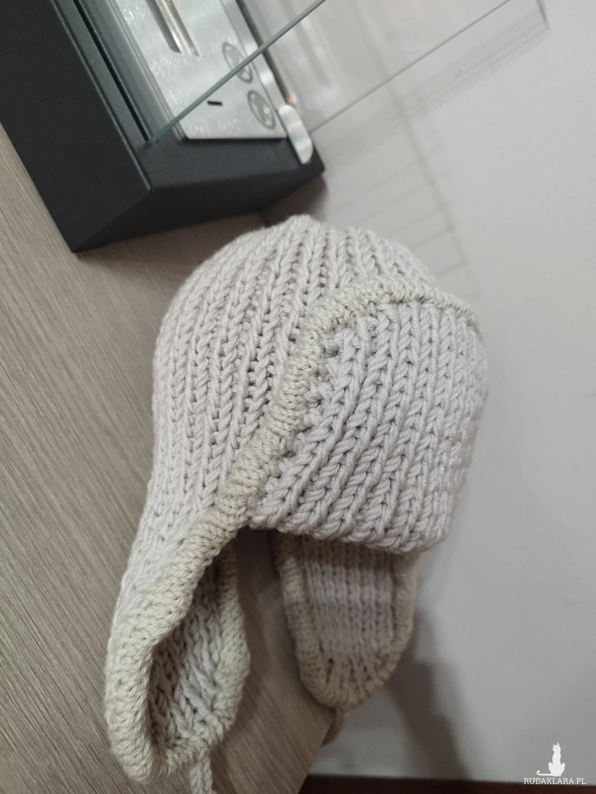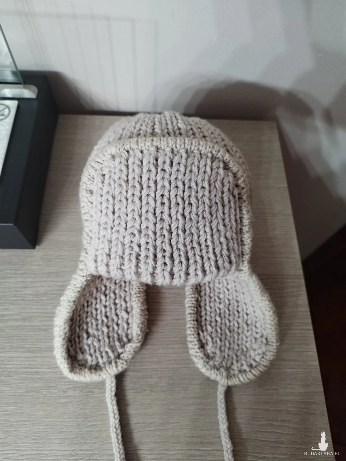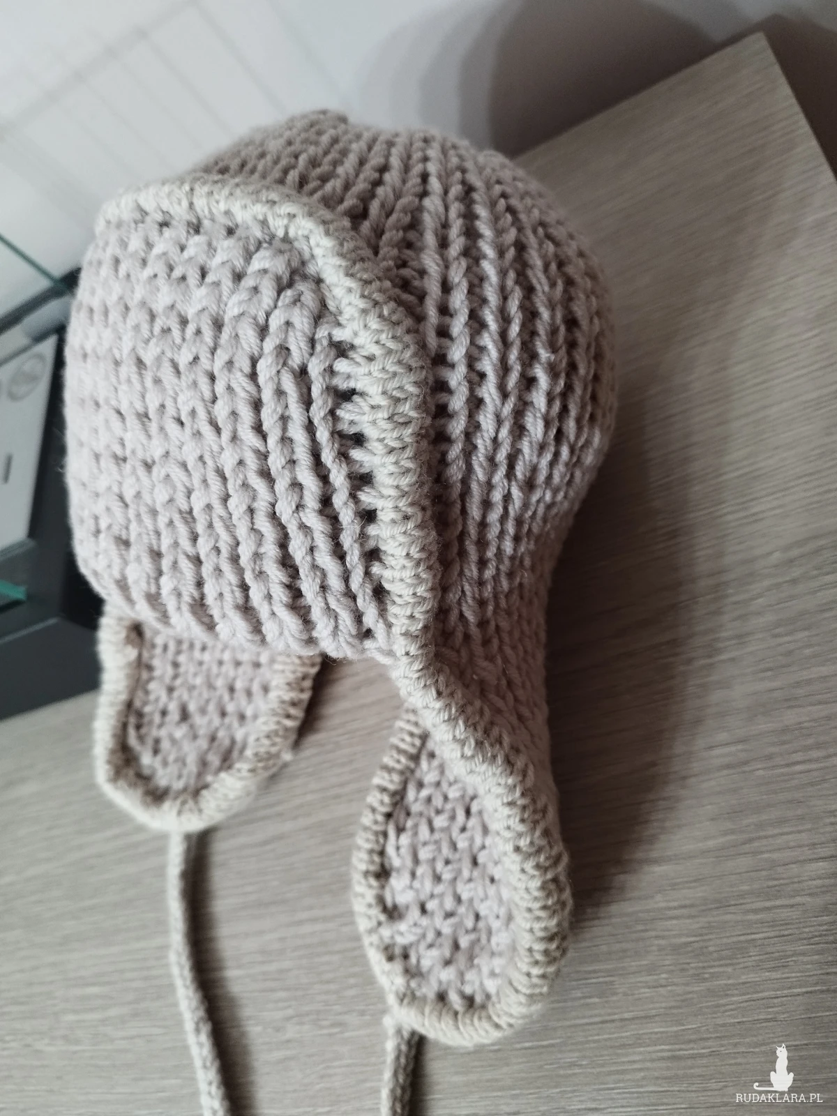 Czapka dziecięca zrobiona na drutach z 100% wełny merino. Pasuje na obwód głowy ok 40-45cm.