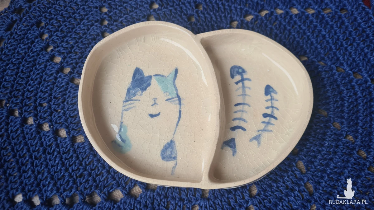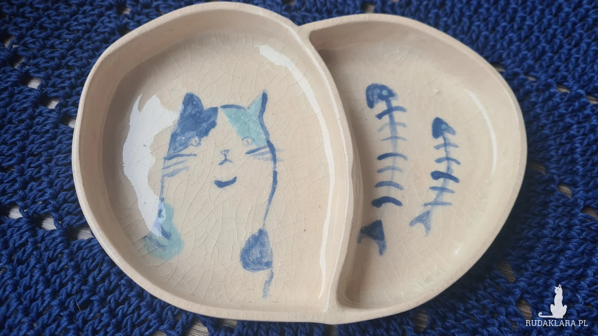 Ceramiczny pojemnik z kotem. Dwukrotnie wypalany w piecu, malowany ręcznie i szkliwiony. Dla kociarz na biżuterię lub inne drobiazgi.