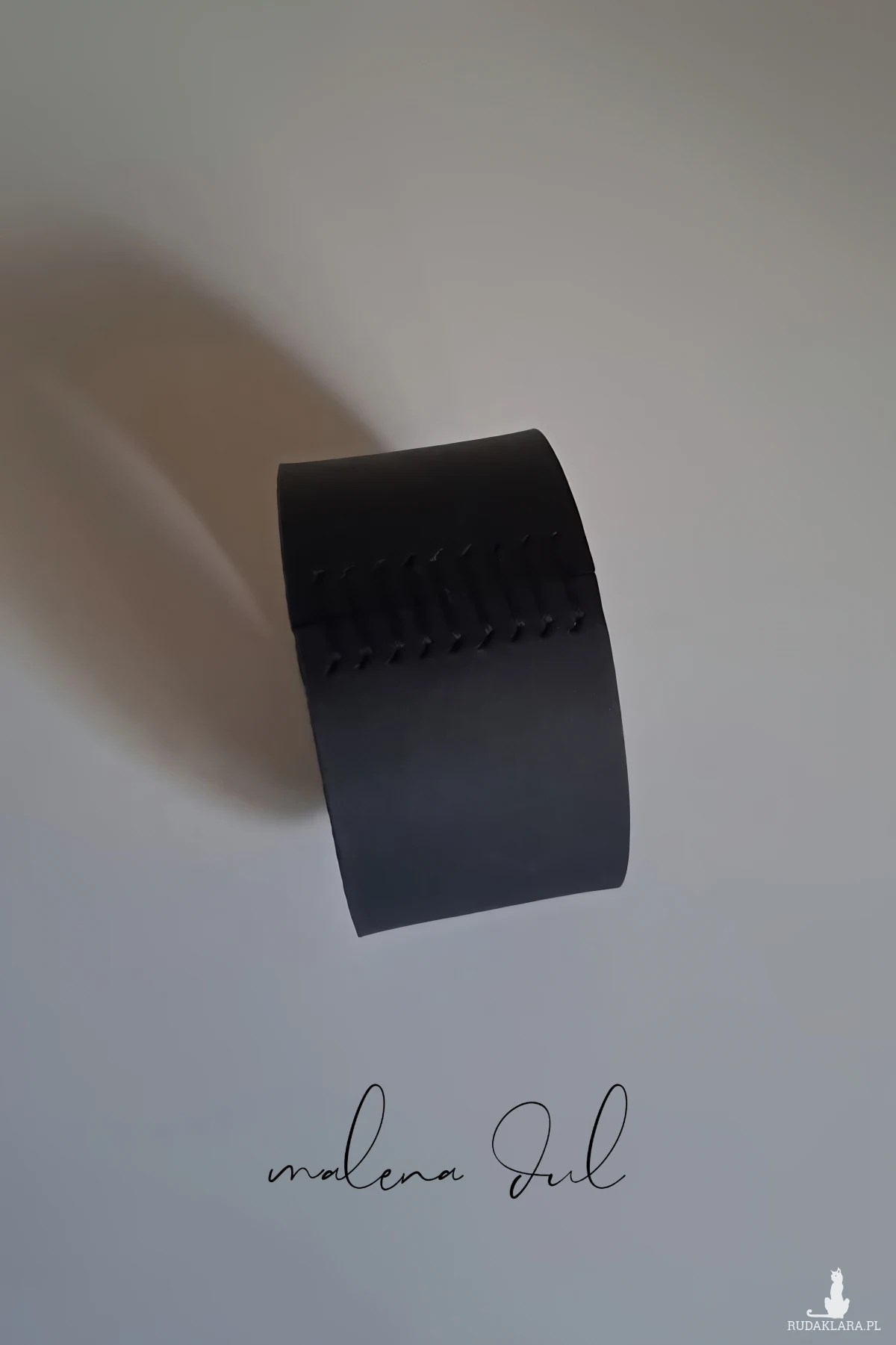 Unikat. Bransoletka - wyjątkowa i oryginalna, wykonane ręcznie.CZarna, wysokiej jakości skóra, delikatnie otula nadgarstek. e. Piękny i unikatowy dodatek do codziennej jak i wieczorowej stylizacji. Szyta czarną nicią kaletniczą.