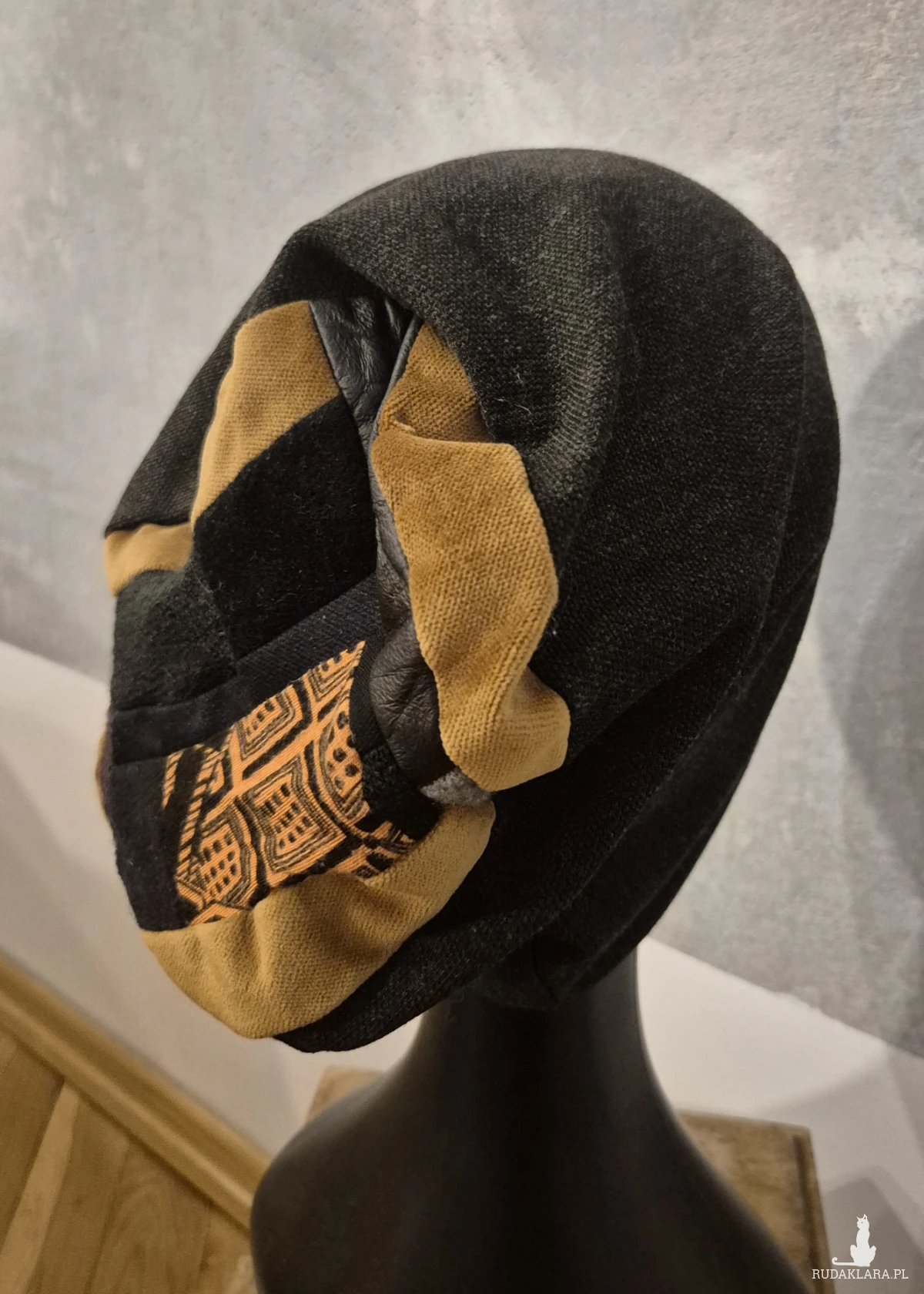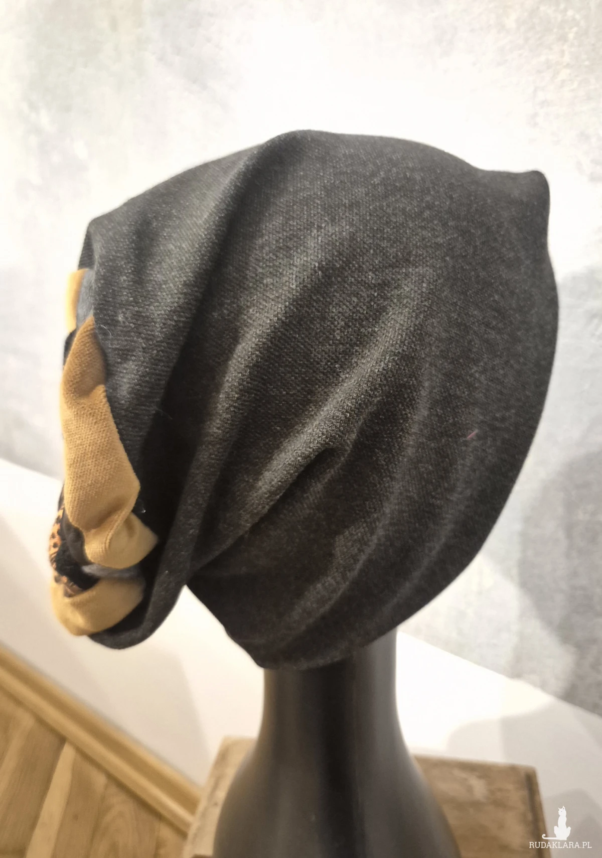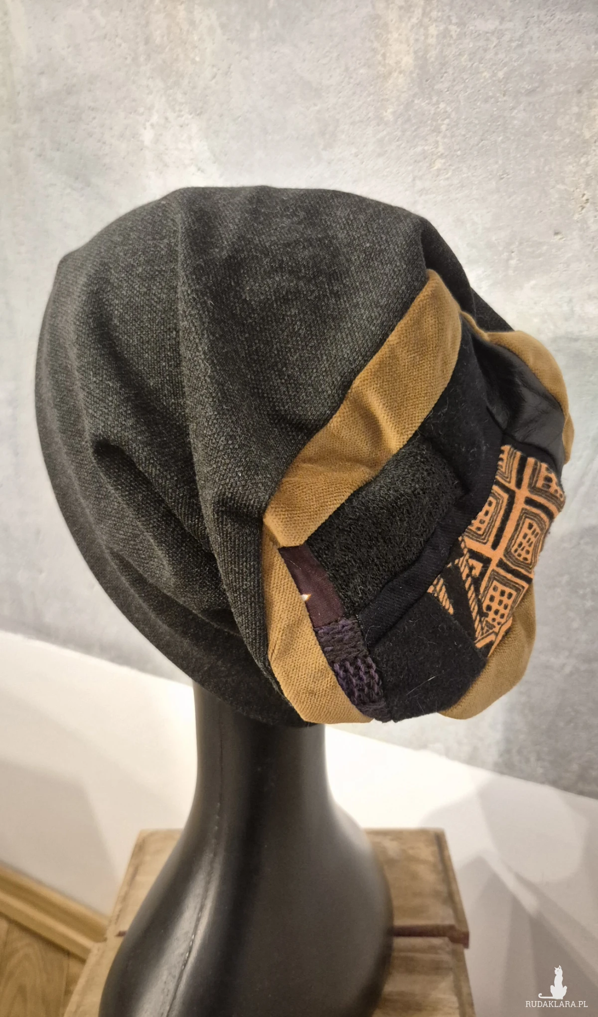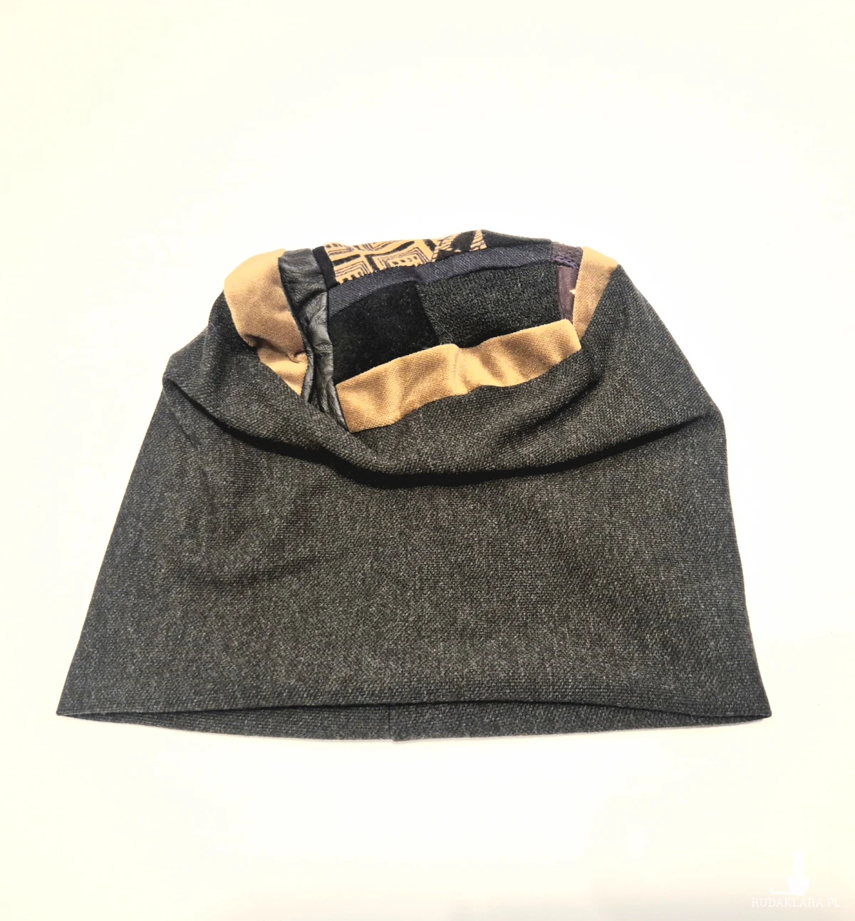 Czapka na podszewce grafitowa  patchworkowa rękodzieło świetna na codzienne noszenie polecam rozmiar uniwersalny Box a1