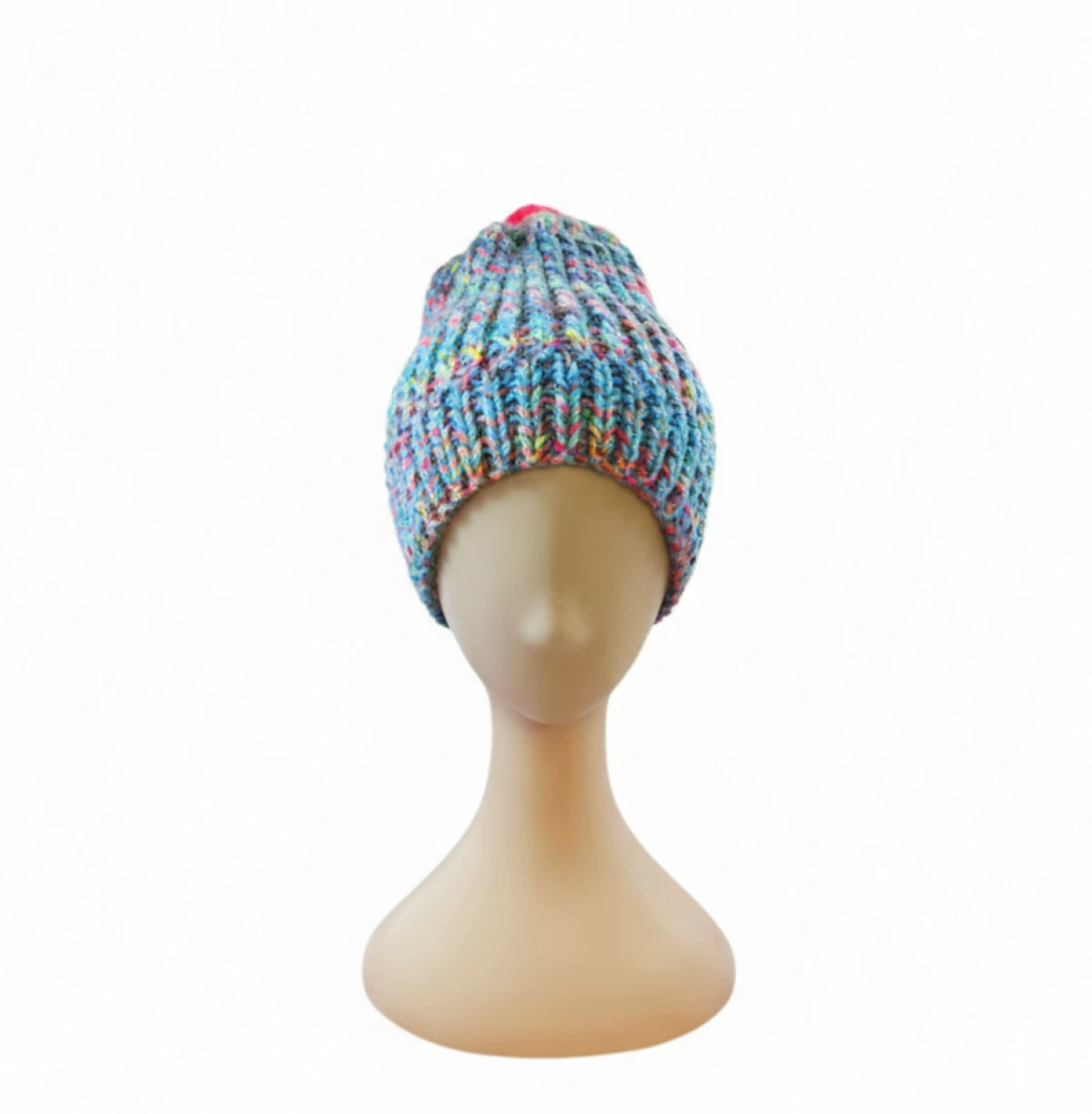 6914 Wielokolorowa Czapka Zimowa z Neonowym Pomponem